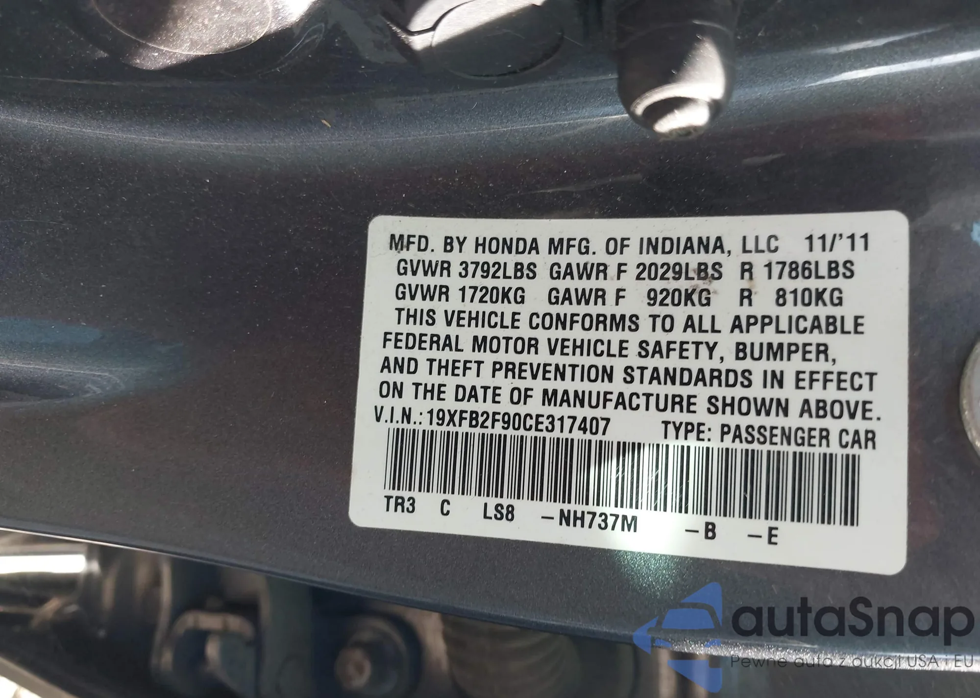 • VIN 19XFB2F90CE317407