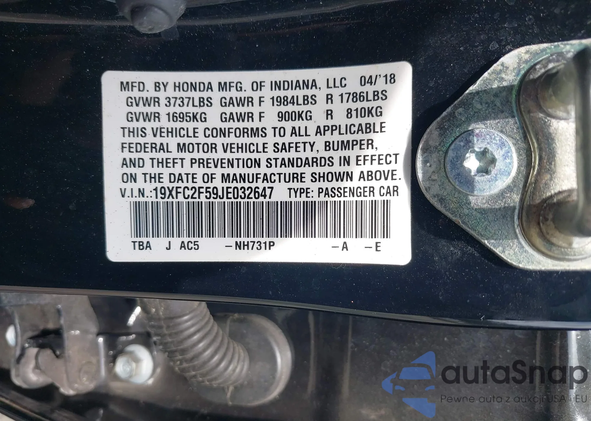 LOT: 43347130 VIN: 19XFB2F90CE317407