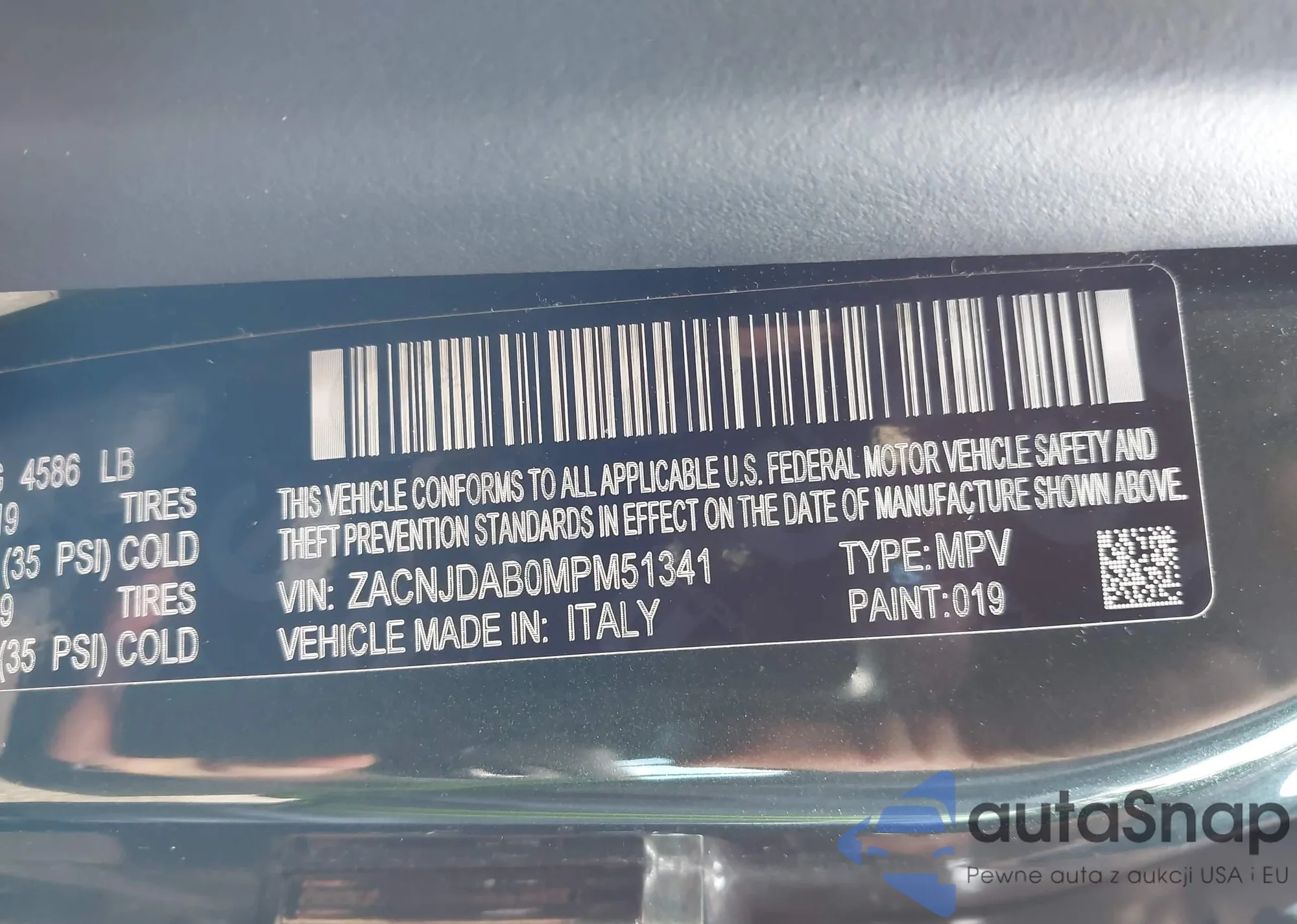 LOT: 43392415 VIN: ZACNJDAB0MPM51341