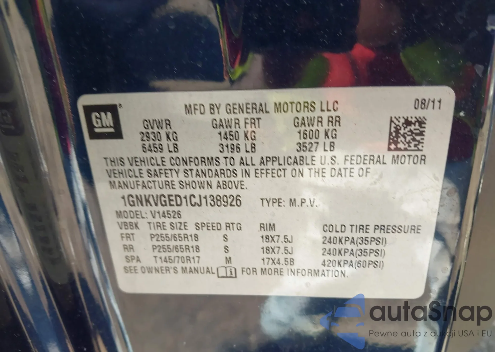 LOT: 43402954 VIN: 1GNKVGED1CJ138926