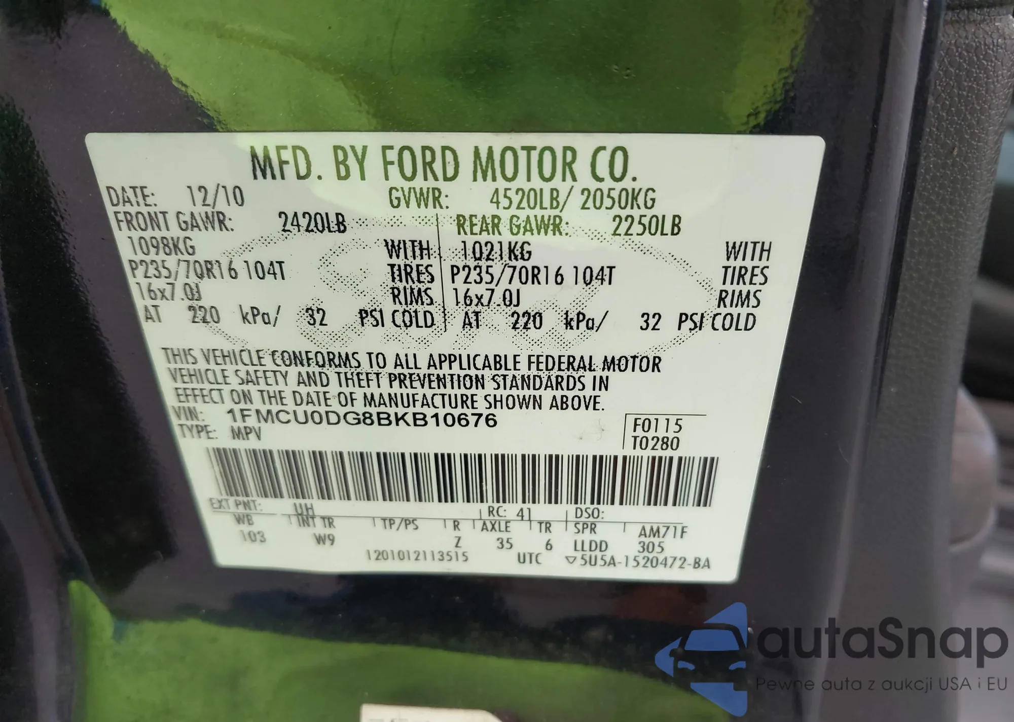 • VIN 1FMCU0DG8BKB10676