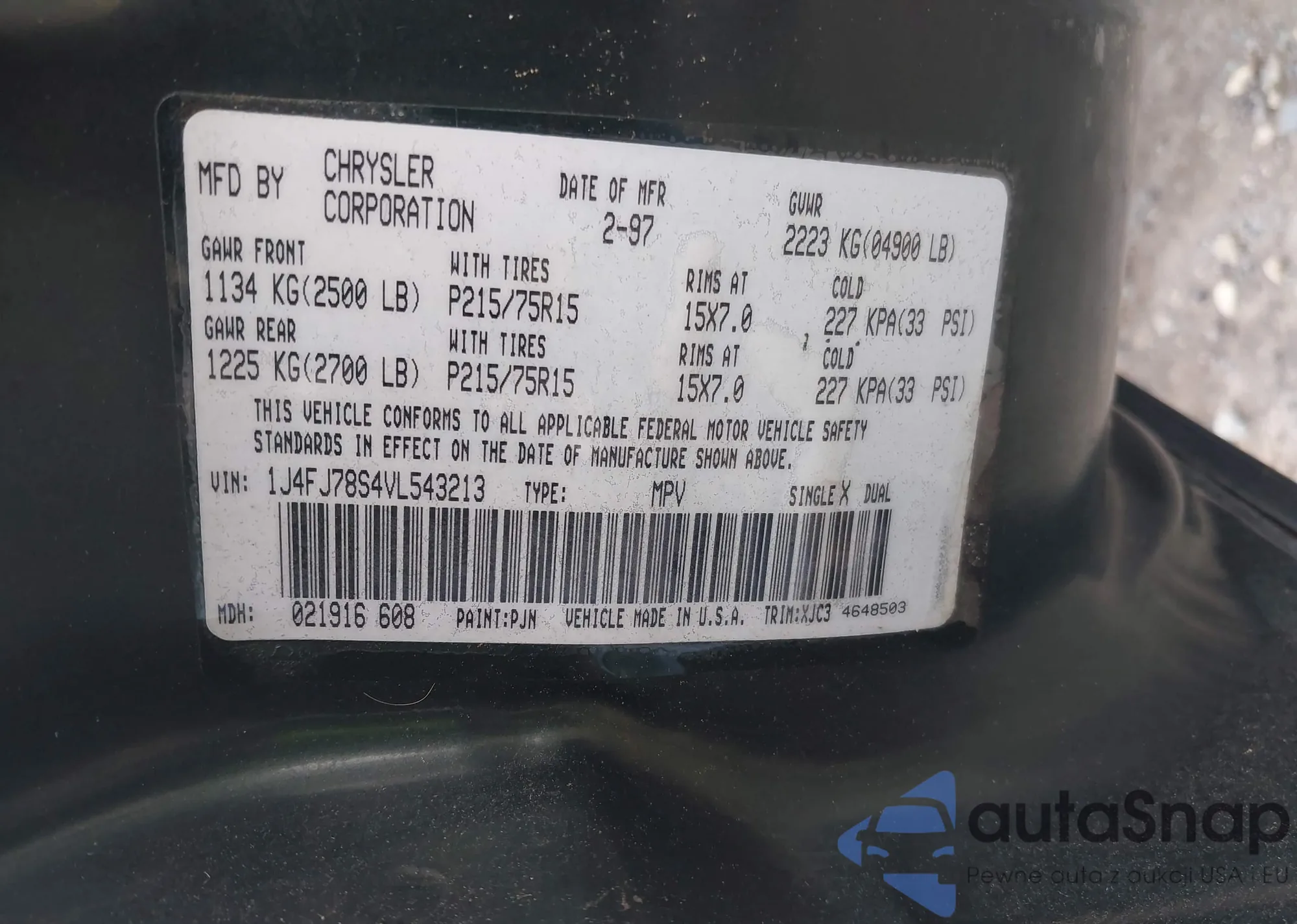 • VIN 1J4FJ78S4VL543213