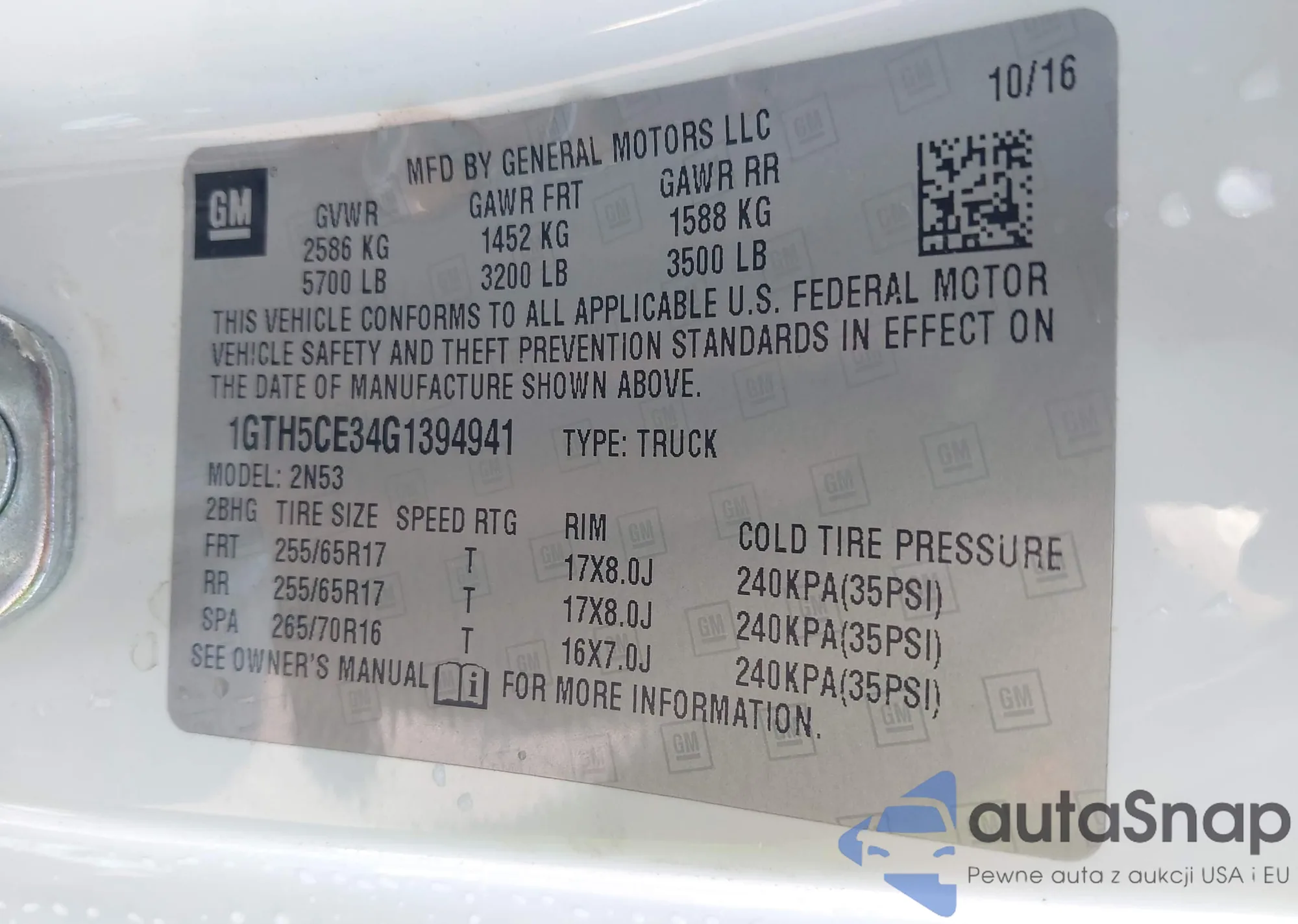 • VIN 3GTU2VEC1FG390610