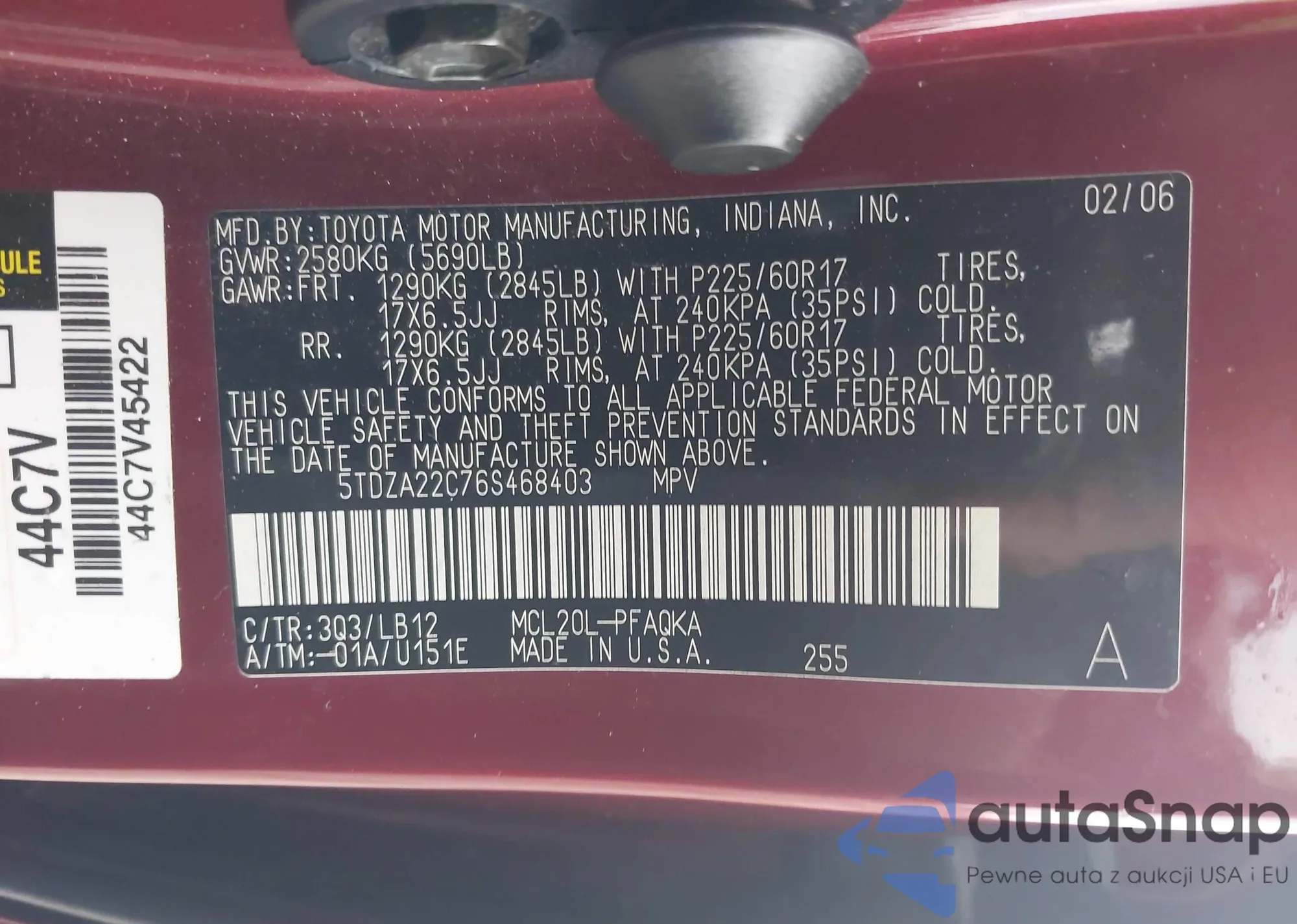 • Lot number 43260686