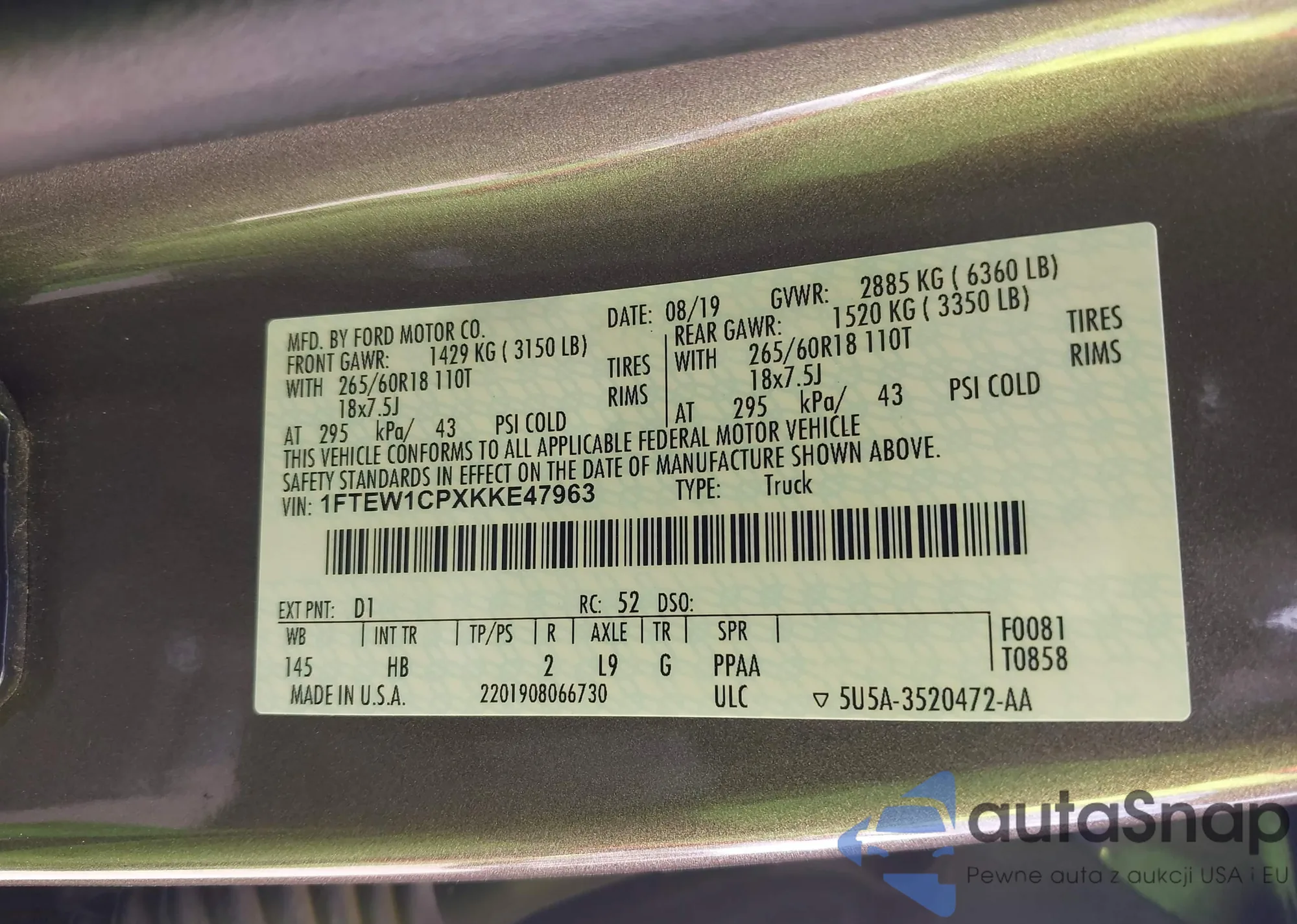LOT: 43314236 VIN: 1FTEW1CPXKKE47963