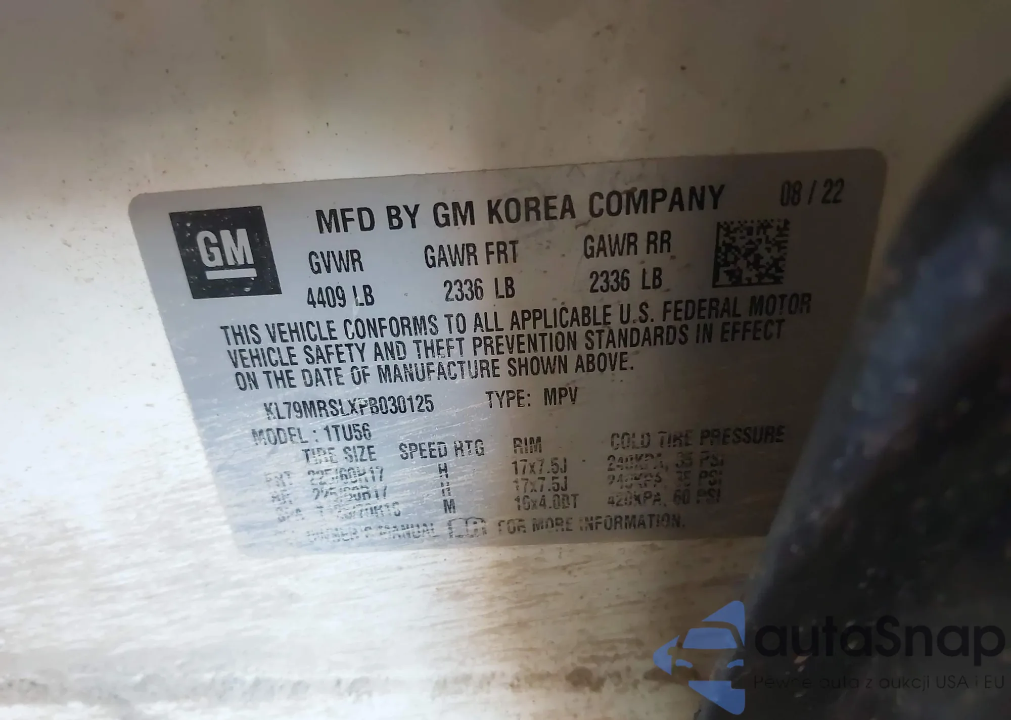 • VIN KL79MRSLXPB030125