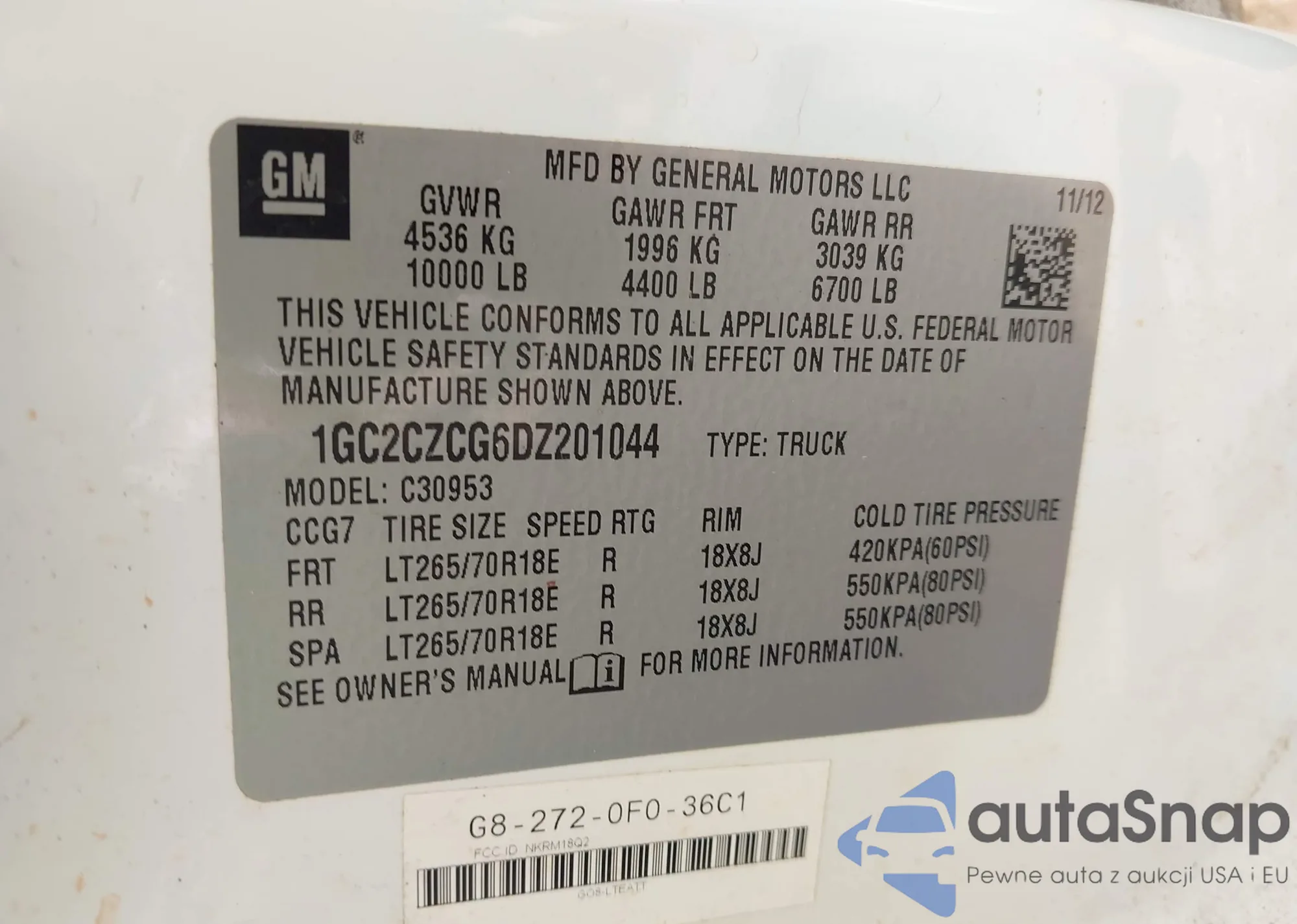 LOT: 43328434 VIN: 1GC2CZCG6DZ201044