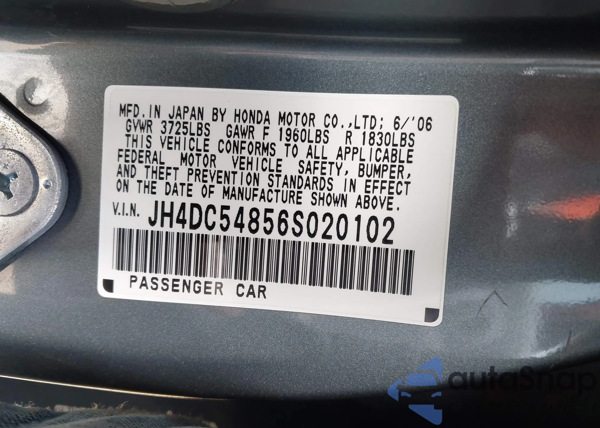• VIN JH4DC54856S020102