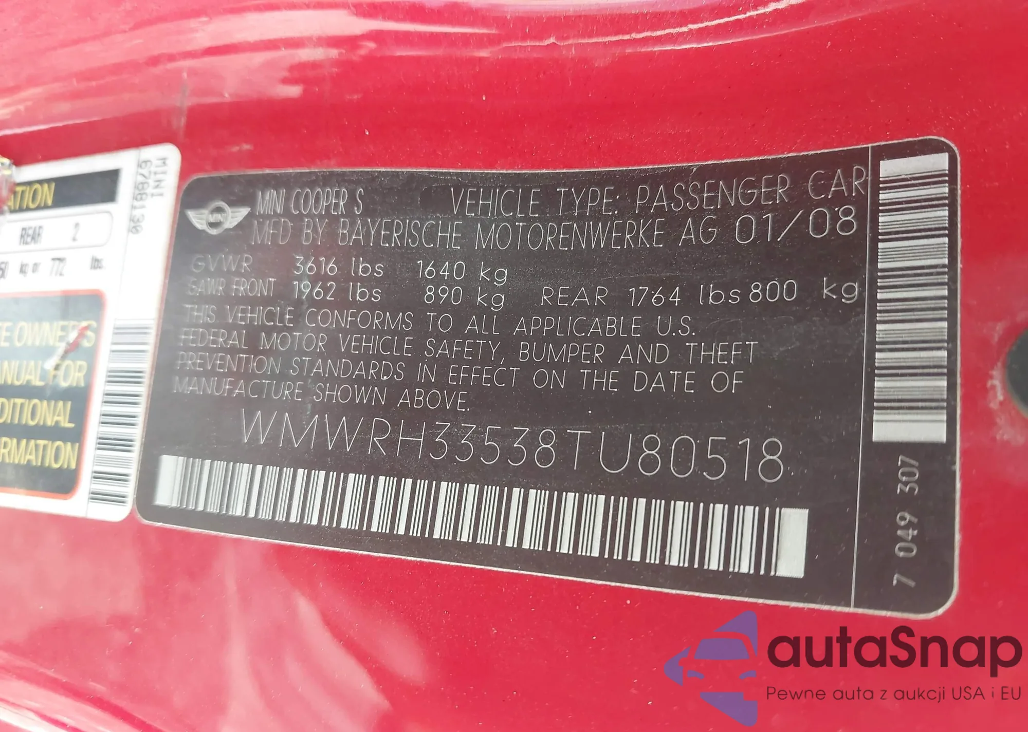• VIN WMWRH33538TU80518