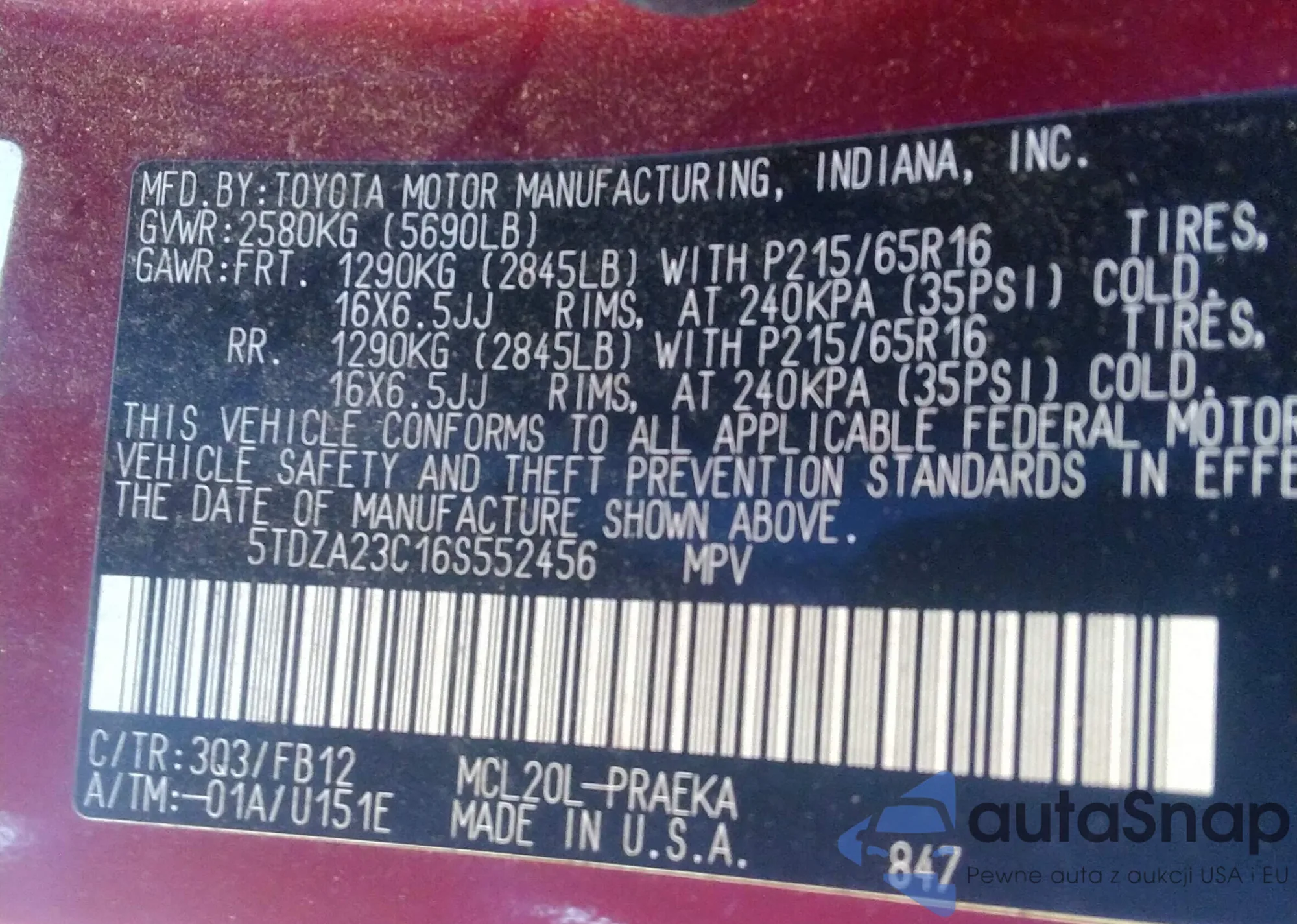 • VIN 5TDZA23C16S552456