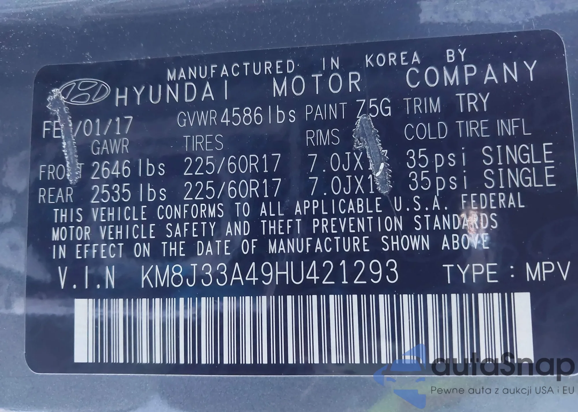 • VIN KM8J33A49HU421293