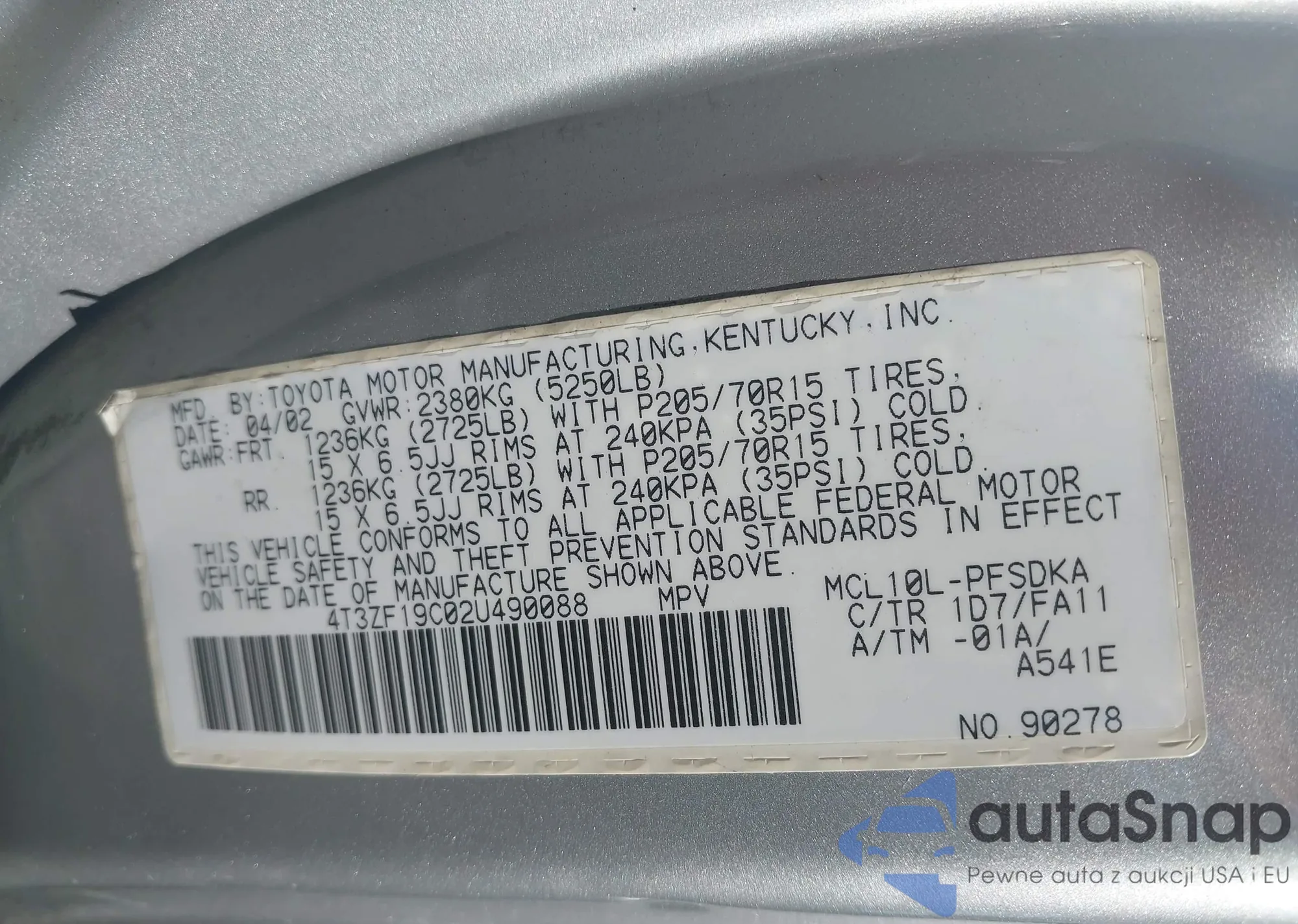 • VIN 4T4BE46K48R014967