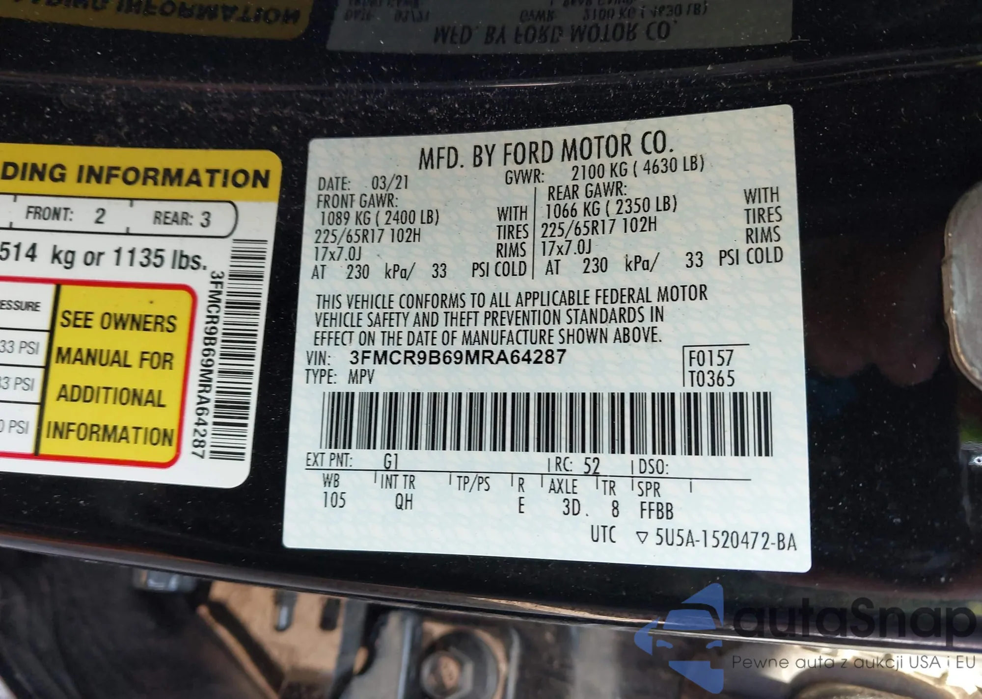 • VIN 1FMCU9G60NUA37089