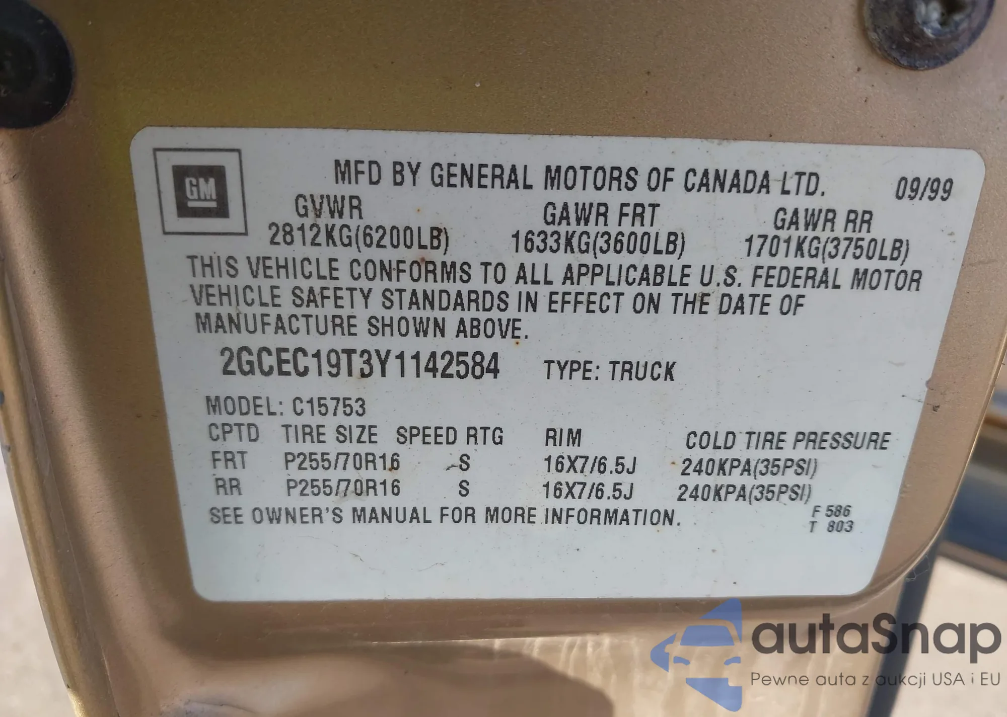 • VIN 2GCEC19T3Y1142584