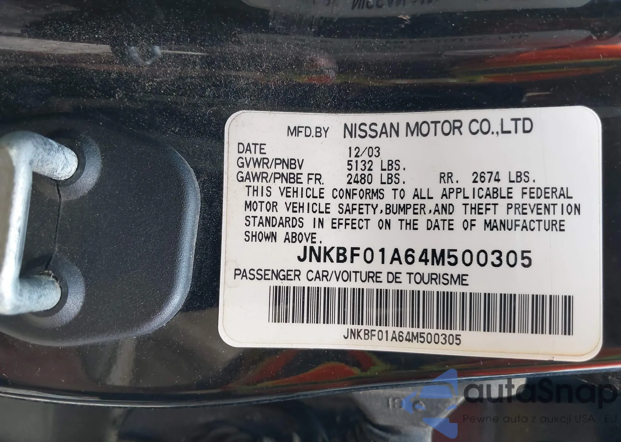LOT: 43264637 VIN: JNKBF01A64M500305