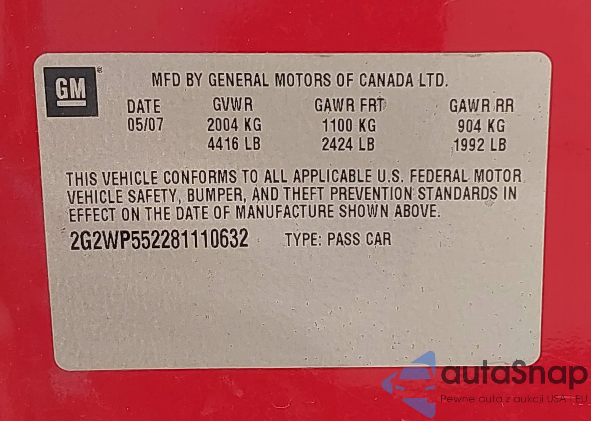• VIN 2G2WP552281110632