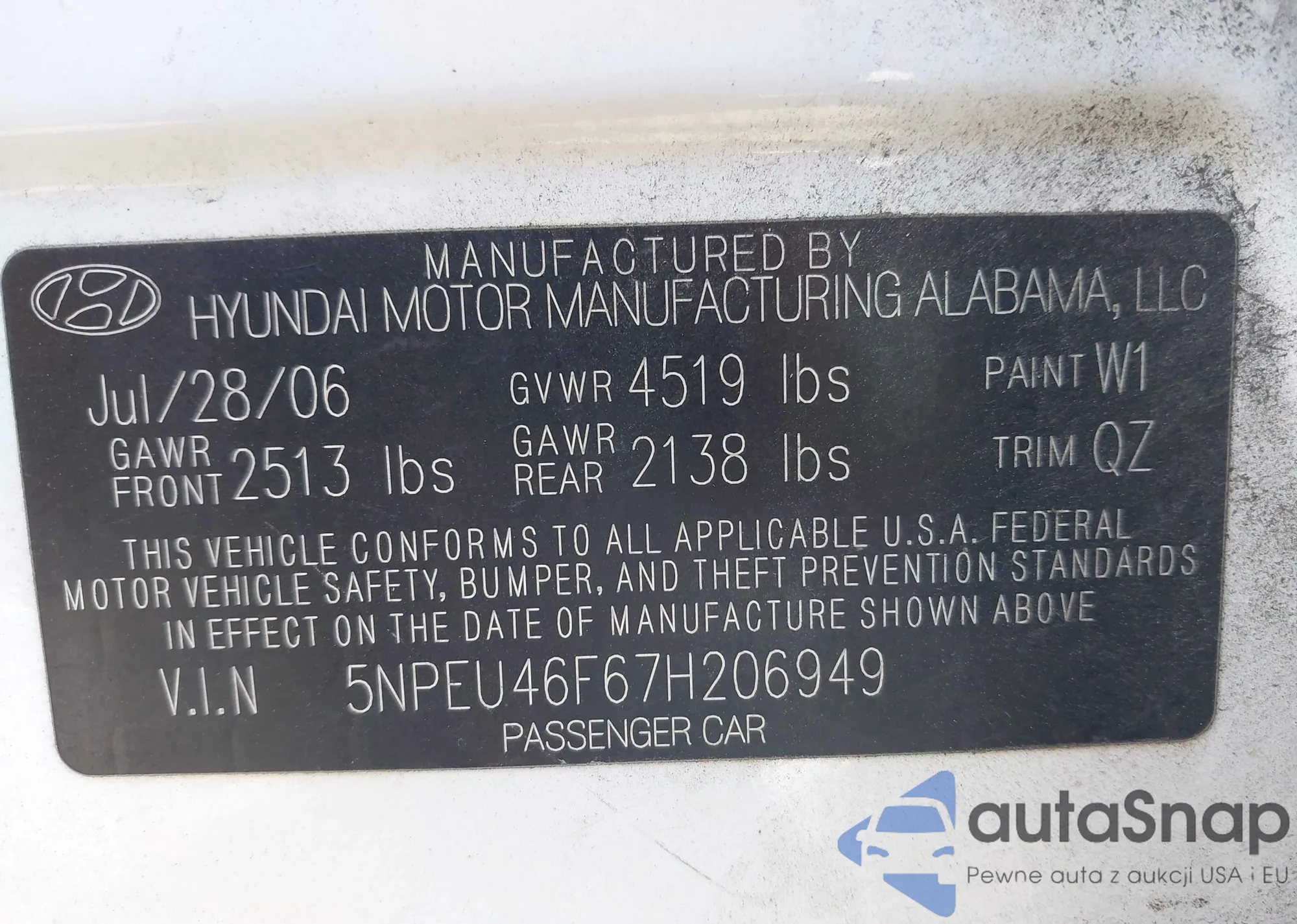 • VIN 5NPEU46F67H206949