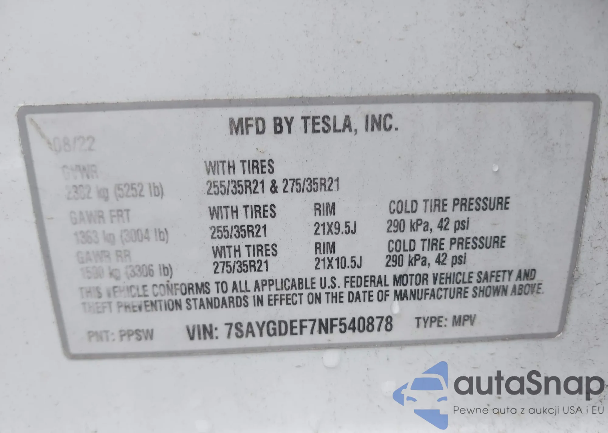 • VIN 7SAYGDEF7NF540878
