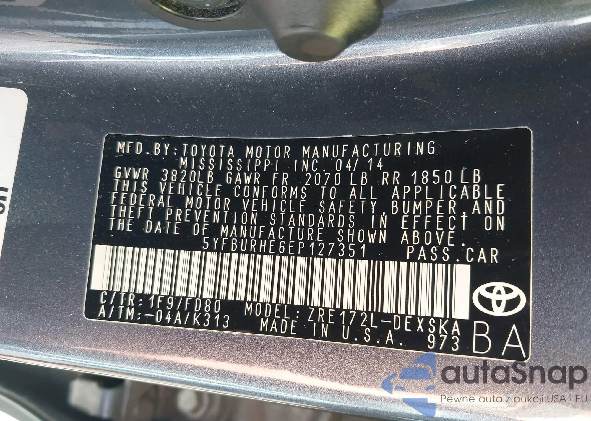 • VIN 5YFBURHE6EP127351
