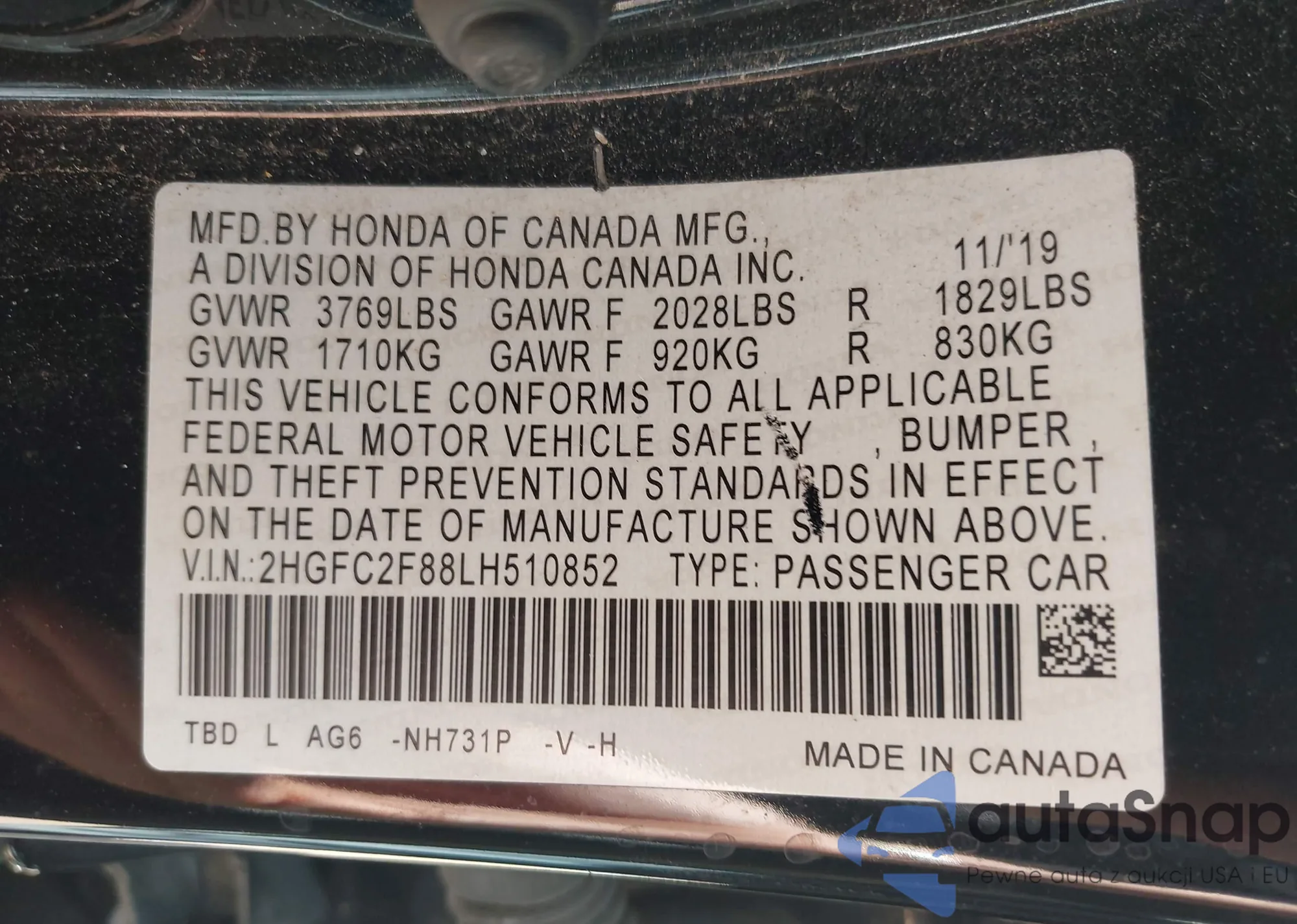 • VIN 2HGFC2F88LH510852