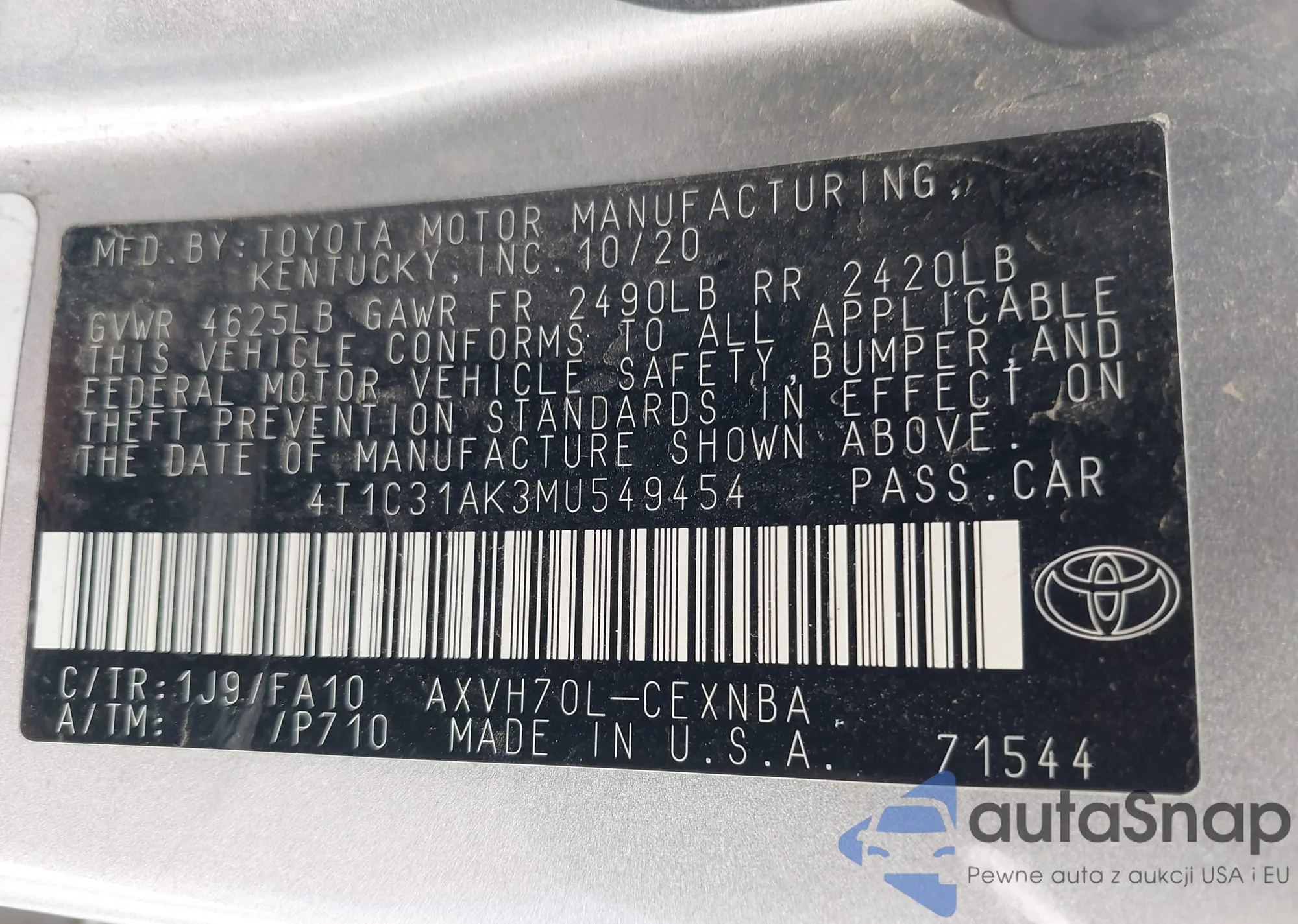 • VIN 4T1C31AK3MU549454