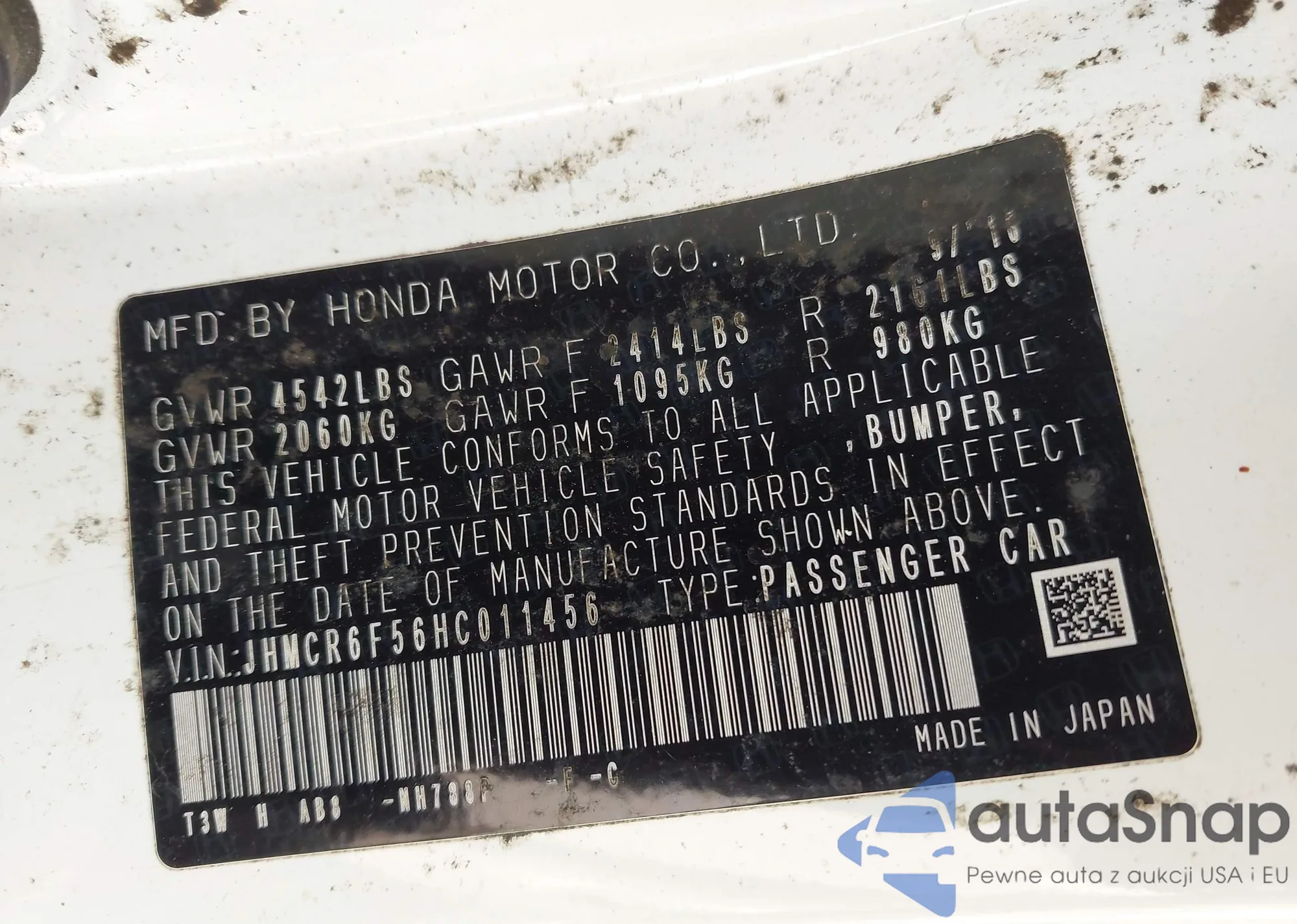 • VIN JHMCR6F56HC011456
