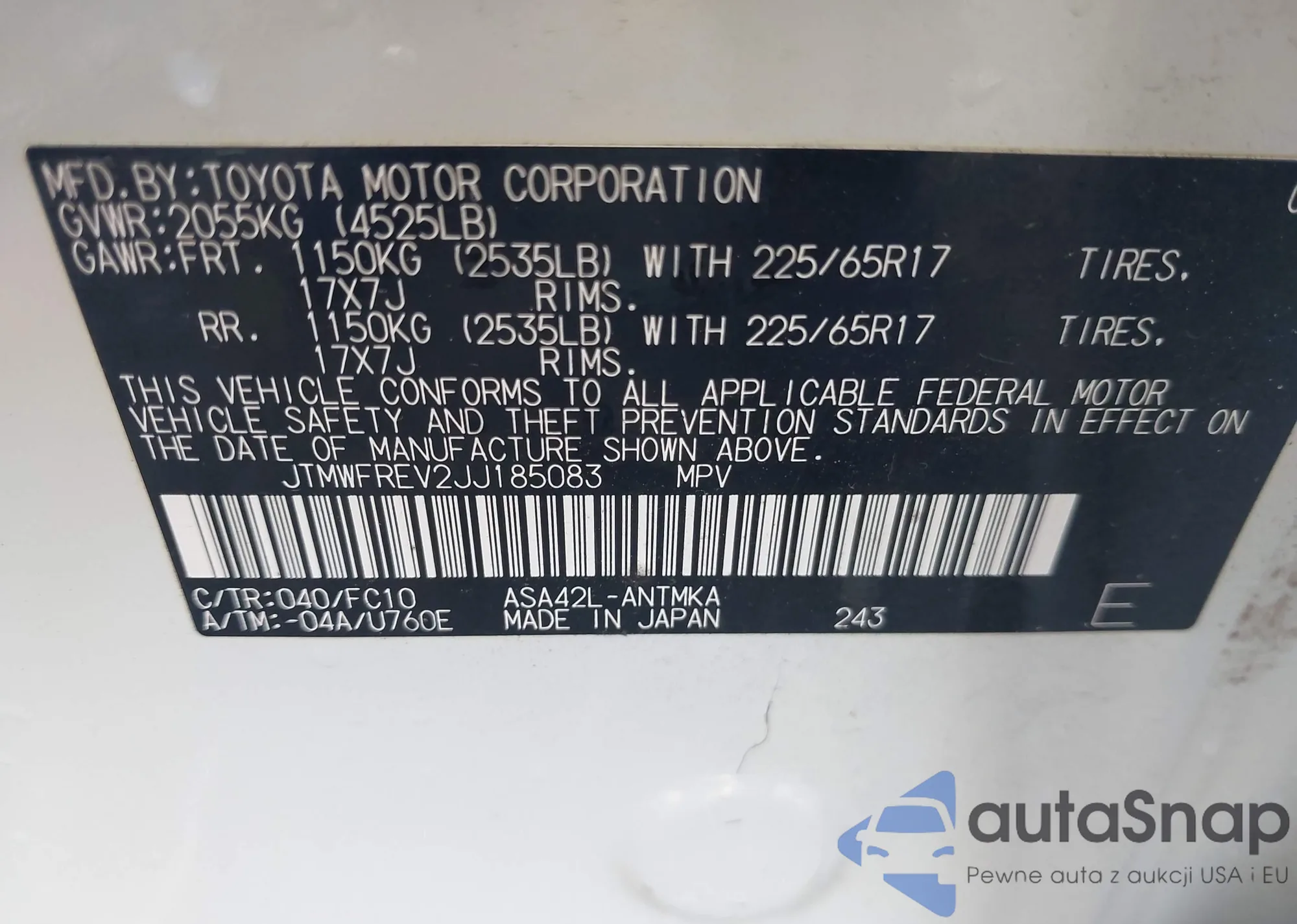 LOT: 43146986 VIN: JA4AT5AA5JZ037987