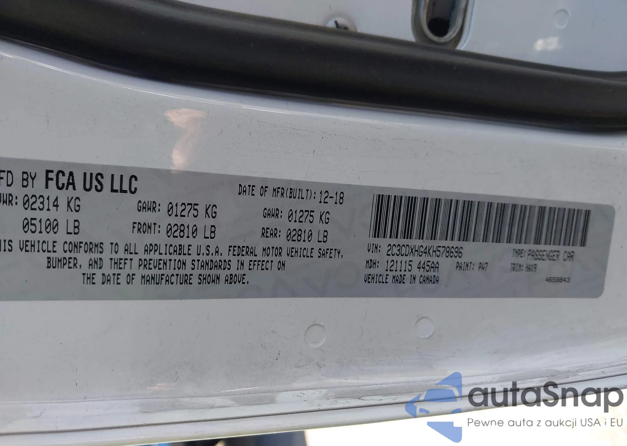 • VIN 2C3CDXHG4KH578696