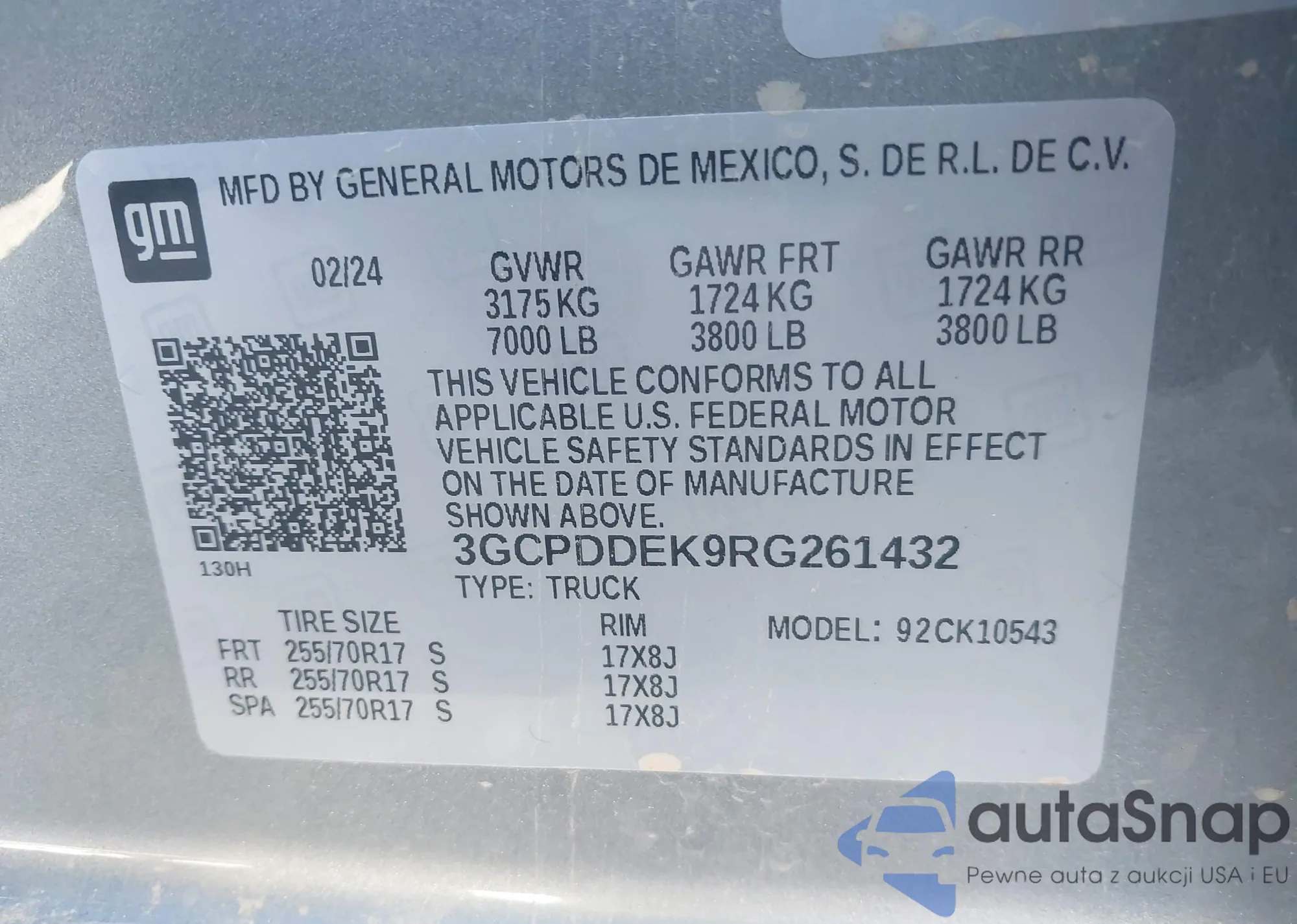 • VIN 3GCPDDEK9RG261432