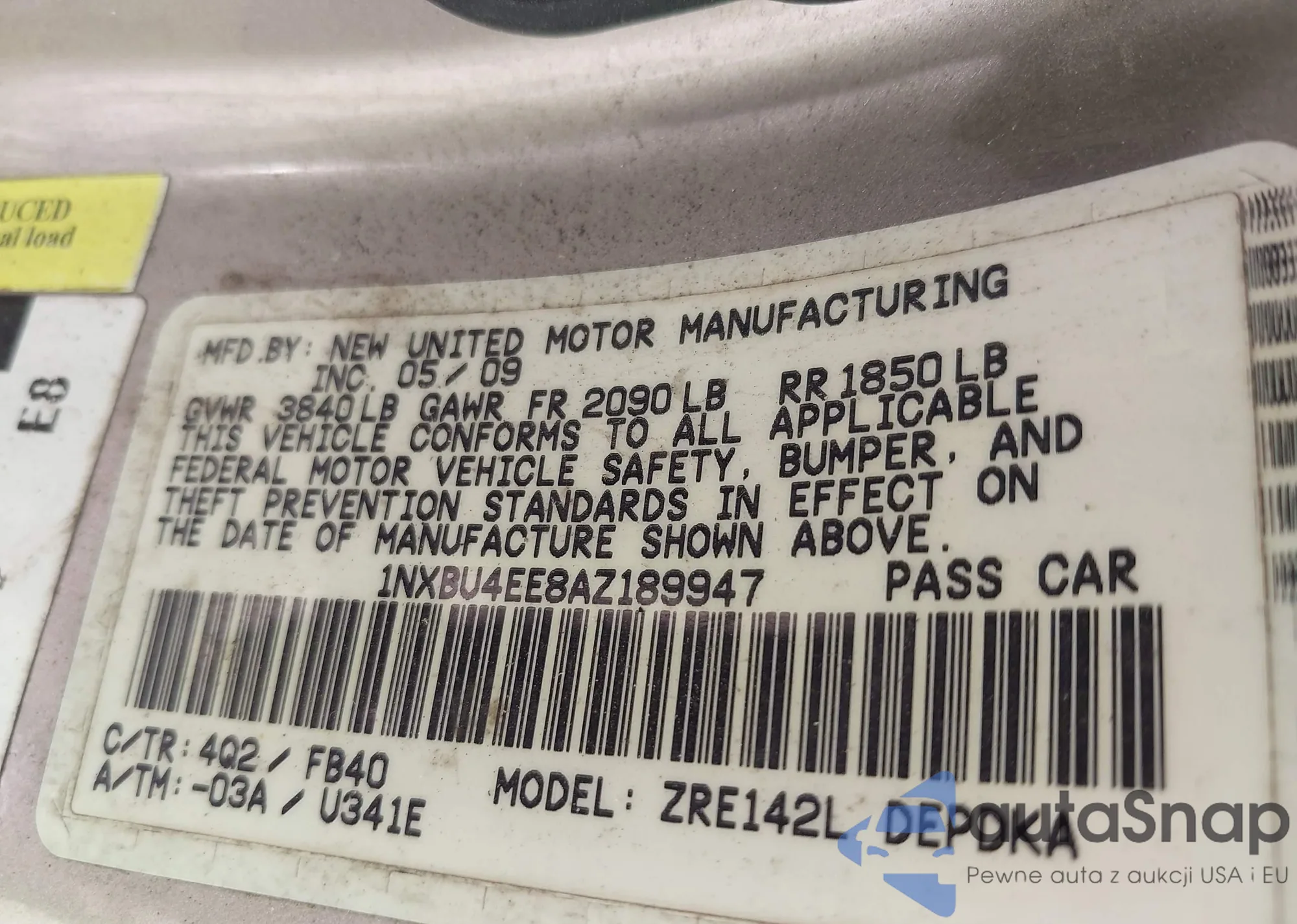 • VIN 4T1BF1FK7EU776014