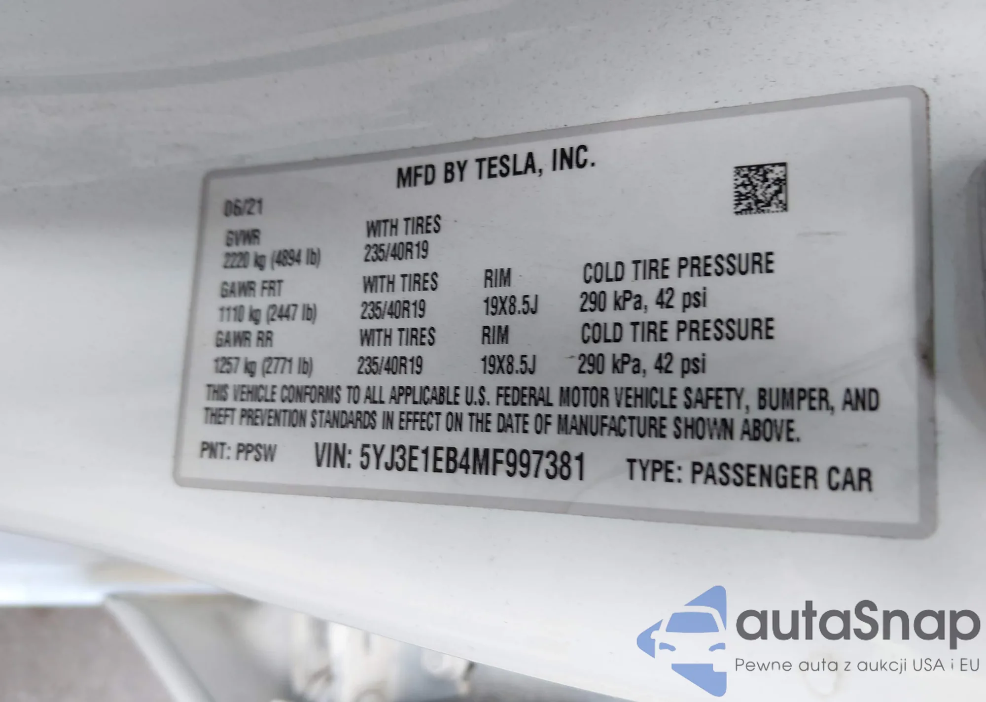 • VIN 5YJ3E1EB4MF997381