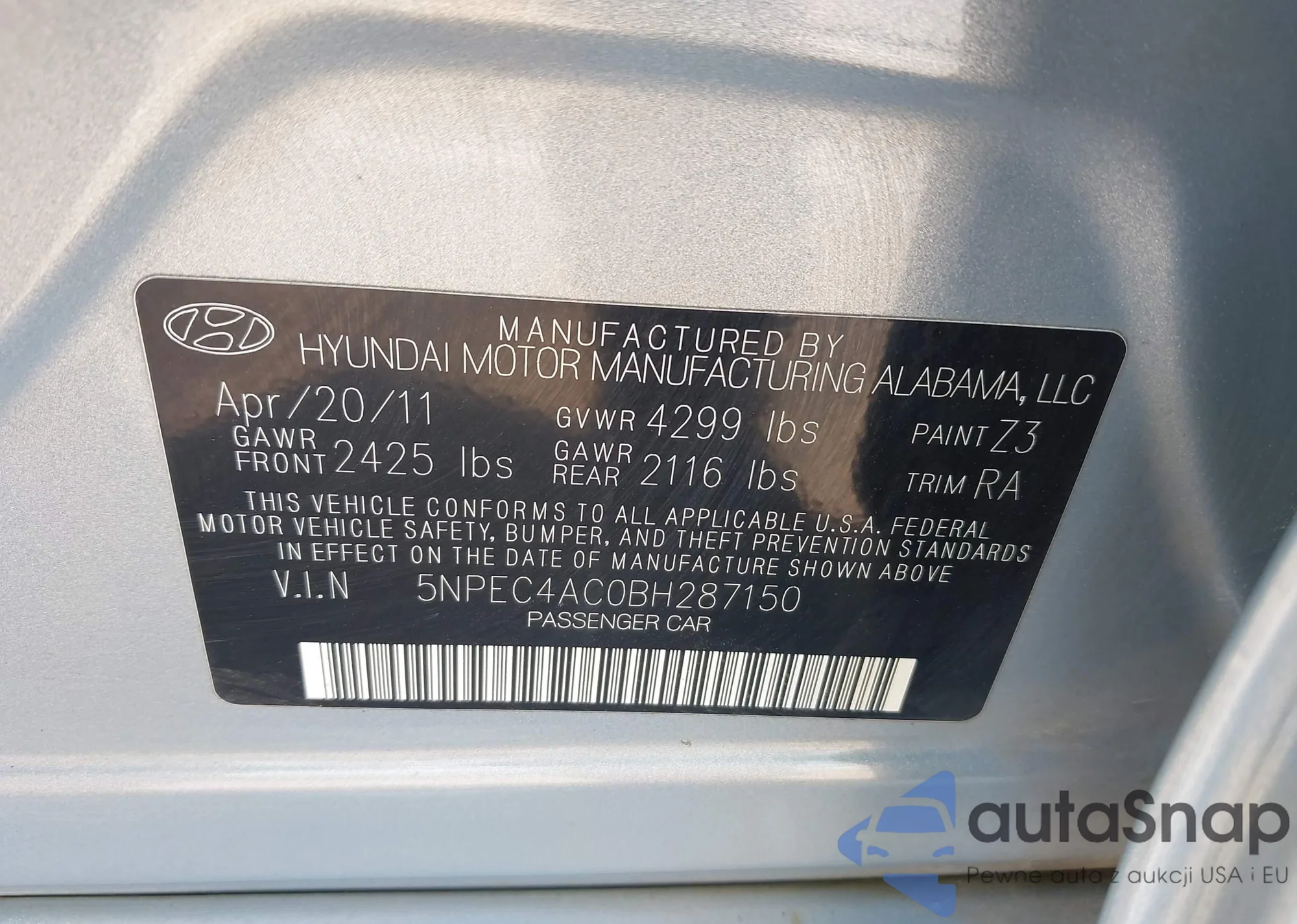 • VIN 5NPEC4AC0BH287150