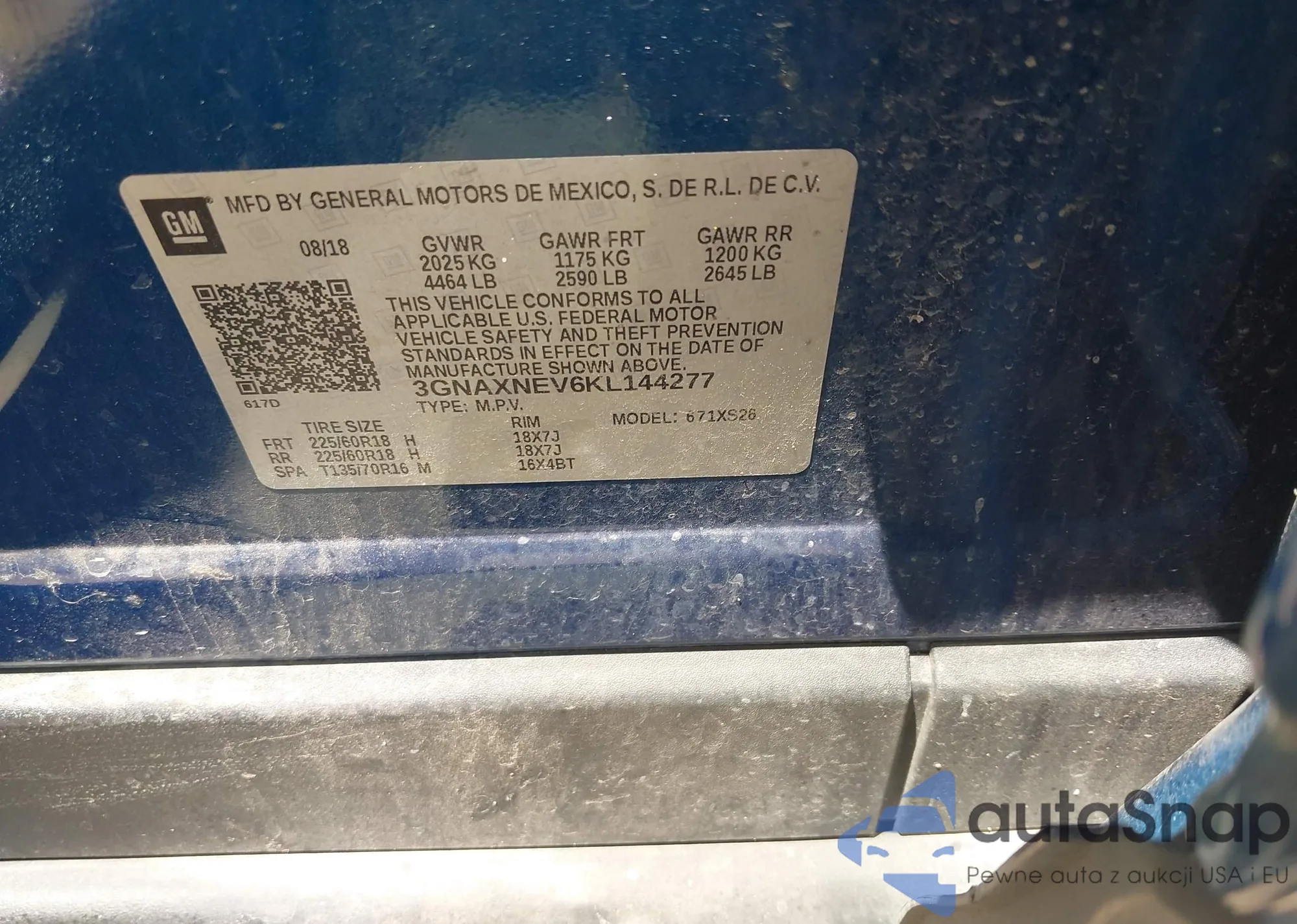 • VIN 3GNAXNEV6KL144277