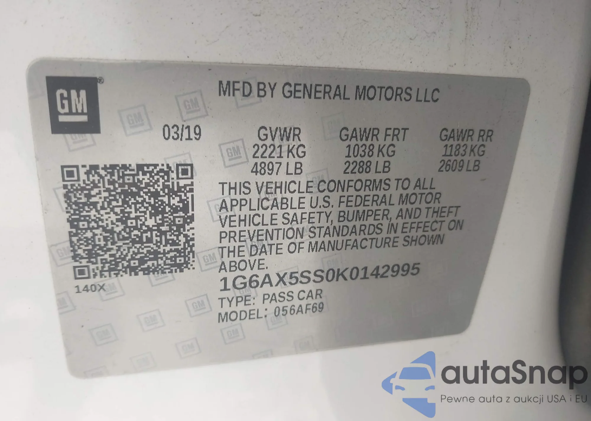 LOT: 42758943 VIN: 1G6AX5SS0K0142995