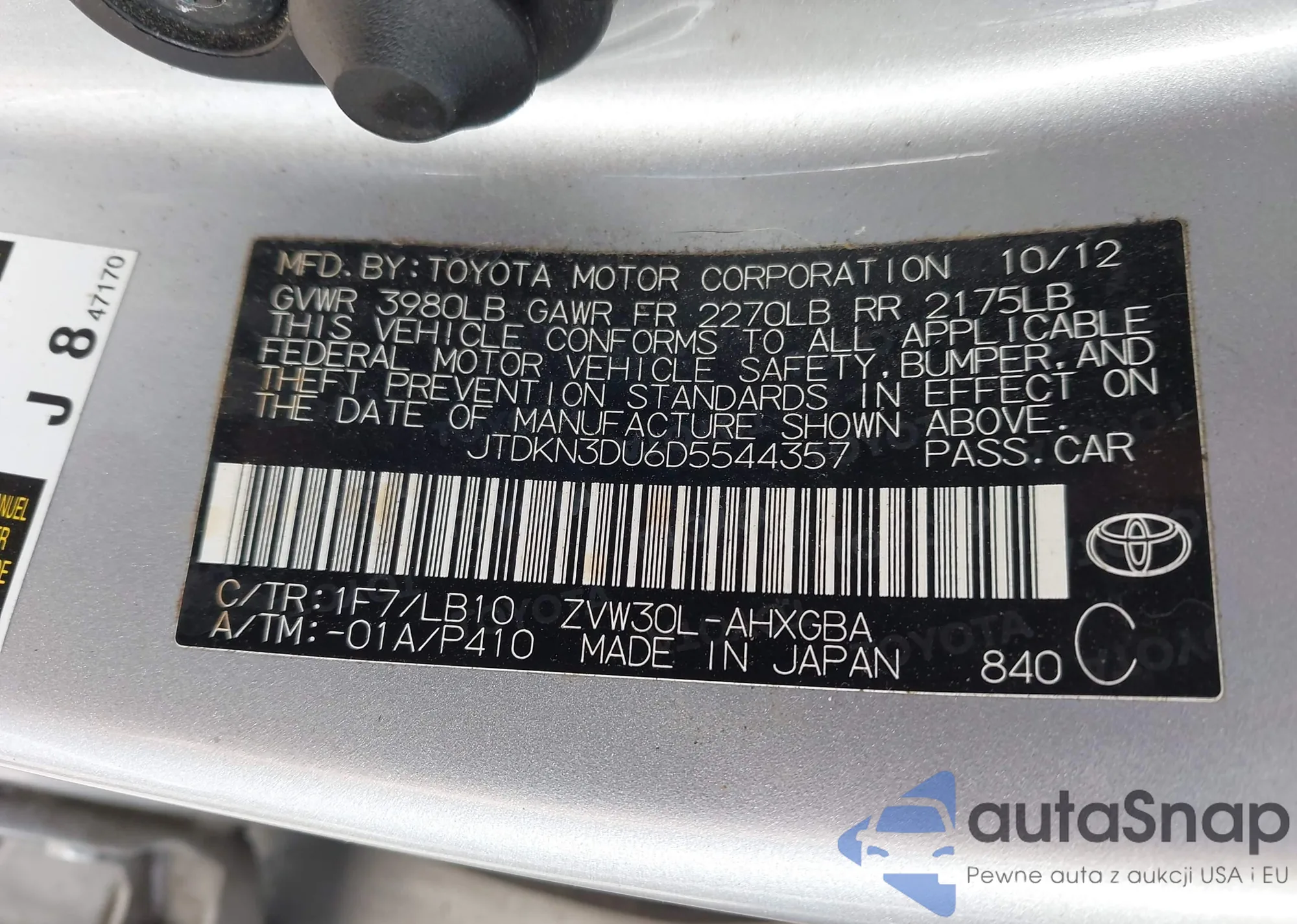 LOT: 43518543 VIN: JTDBU4EE0AJ062230