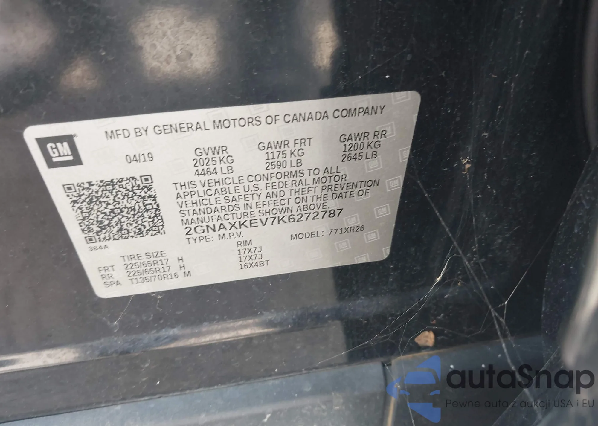 2019 Chevrolet Equinox Lt from USA, damaged, VIN 2GNAXKEV7K6272787
