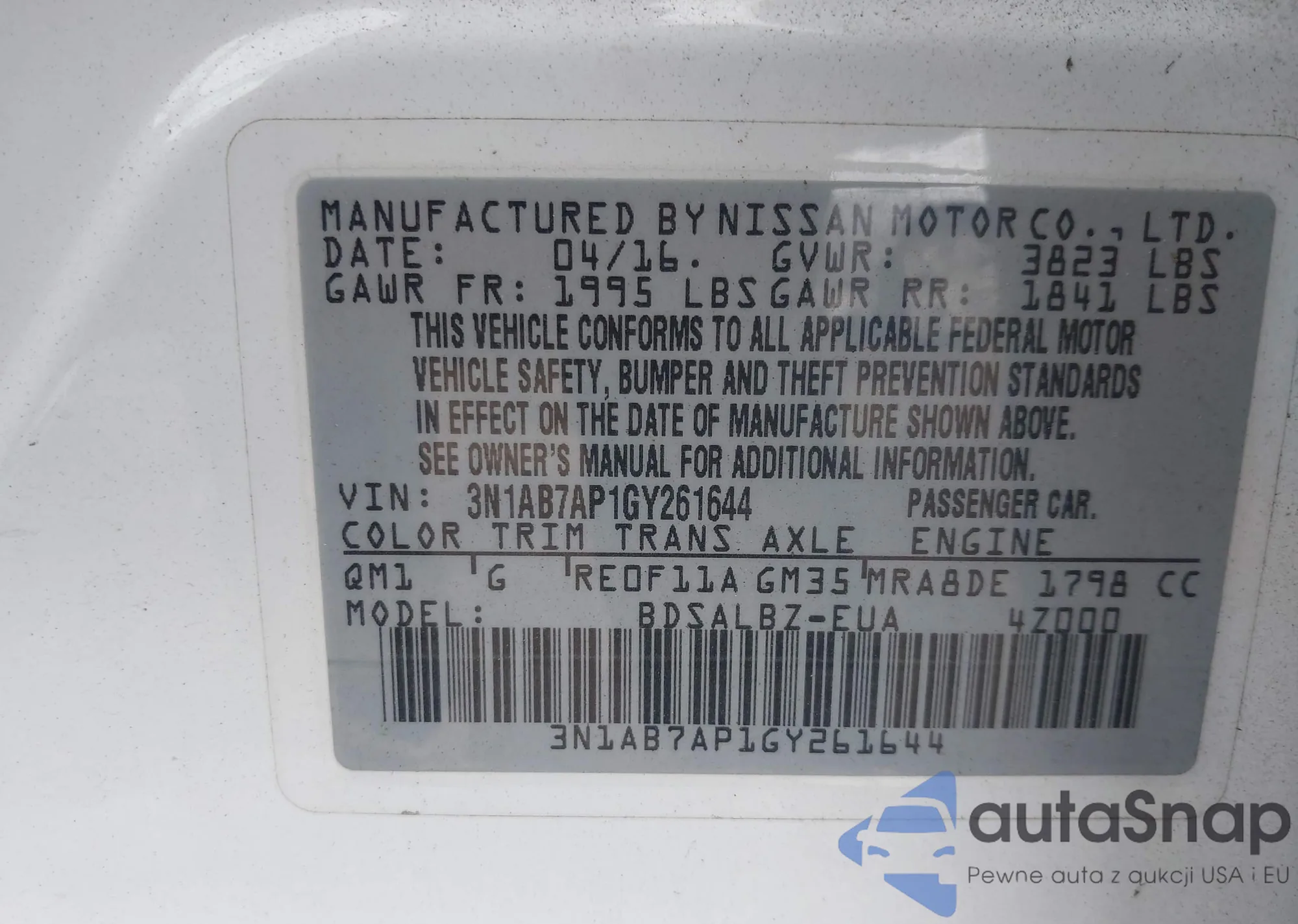 • VIN 3N1AB7AP1GY261644