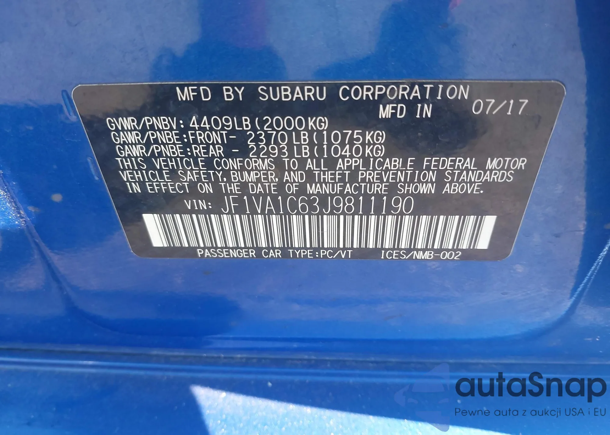 LOT: 42786433 VIN: WA1VAAF78JD018702