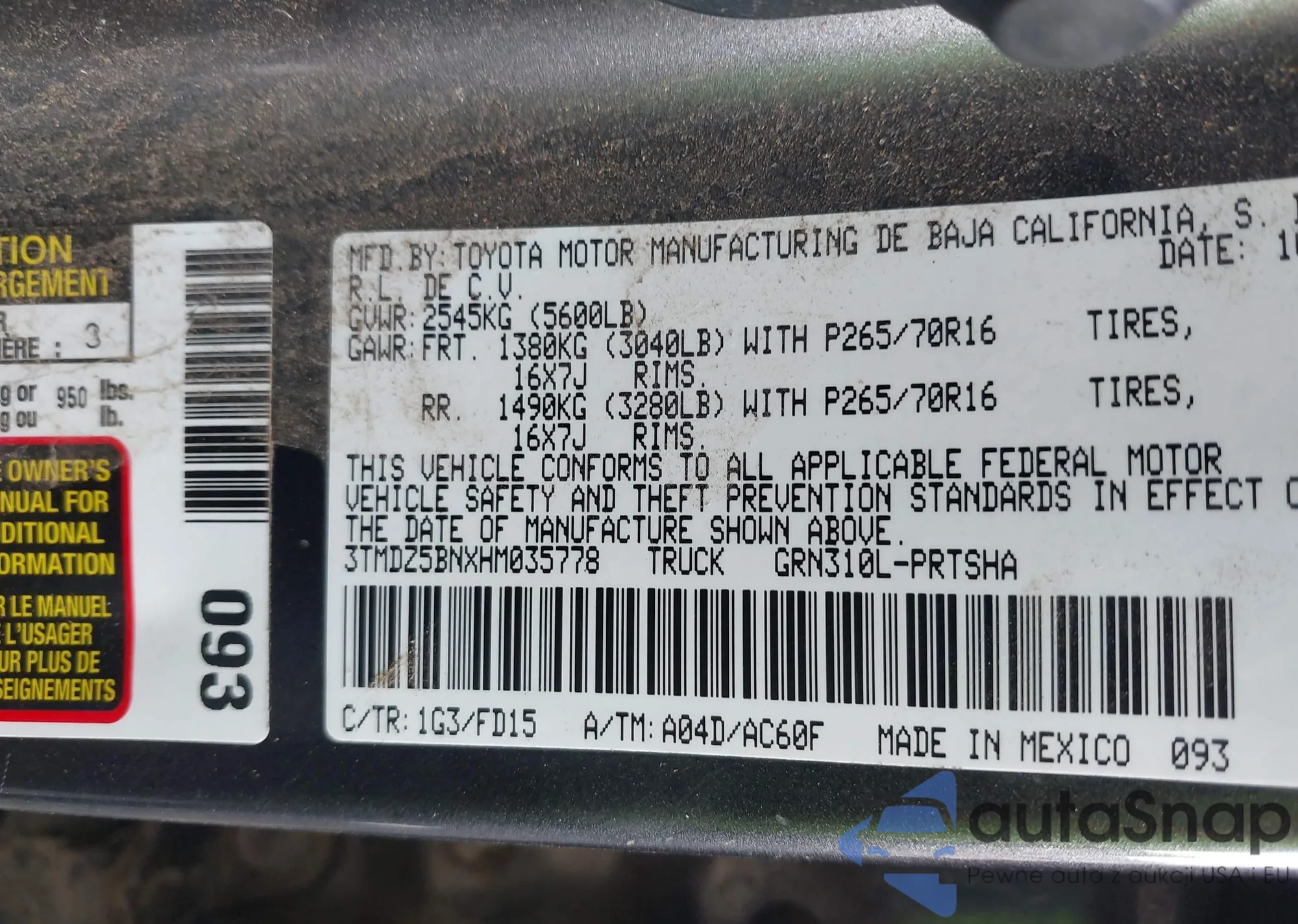 • VIN 3TMDZ5BNXHM035778