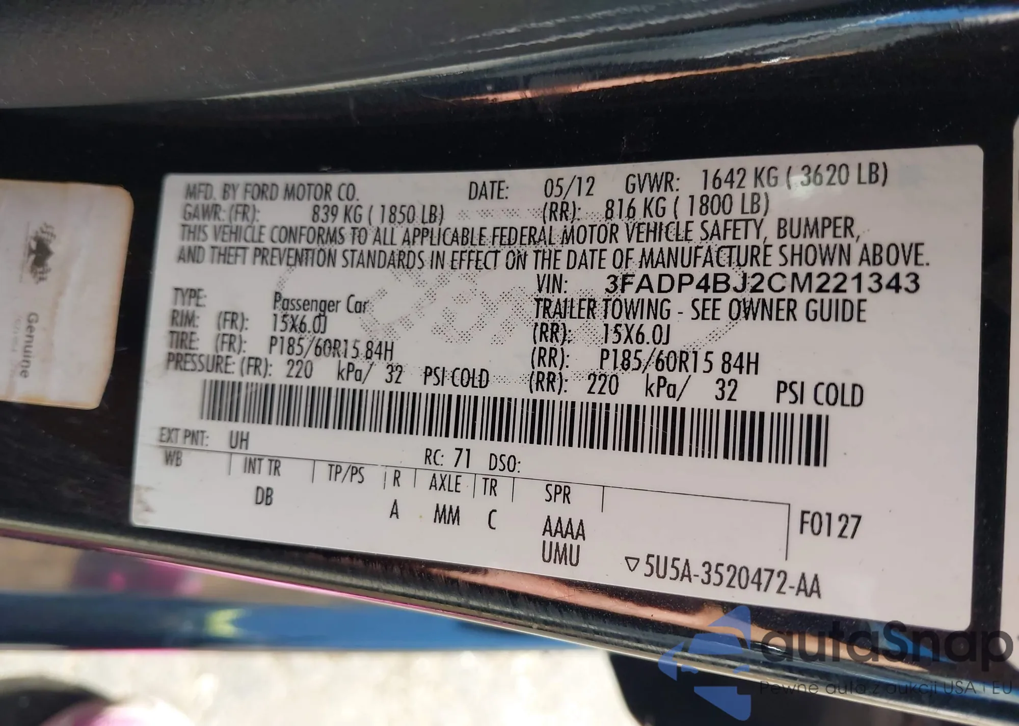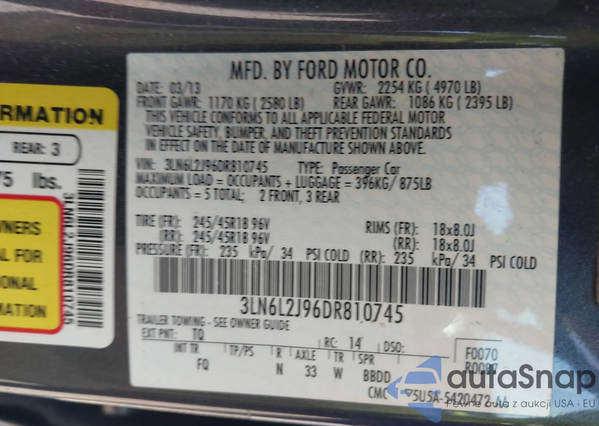LOT: 43084794 VIN: 1FAHP2E88DG210051