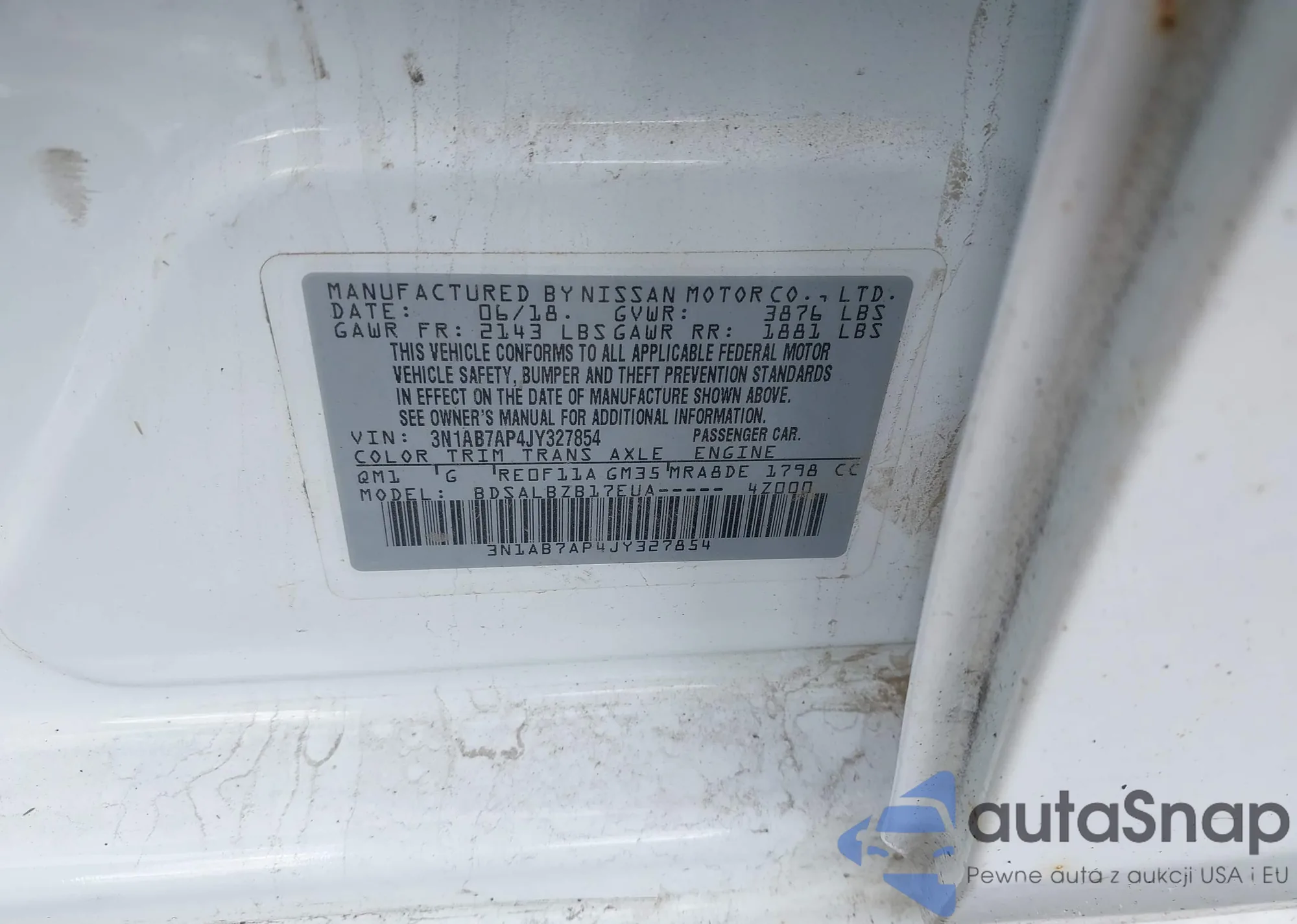 • VIN 3N1AB7AP4JY327854