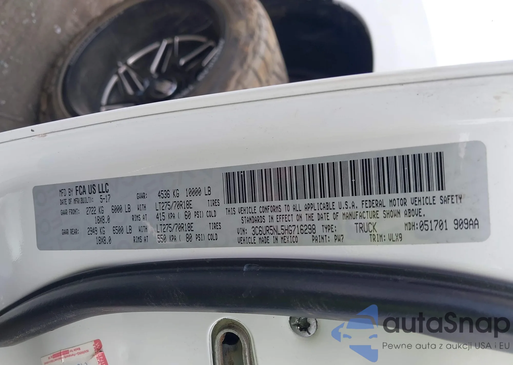 LOT: 43056502 VIN: 3C6UR5NL5HG716298