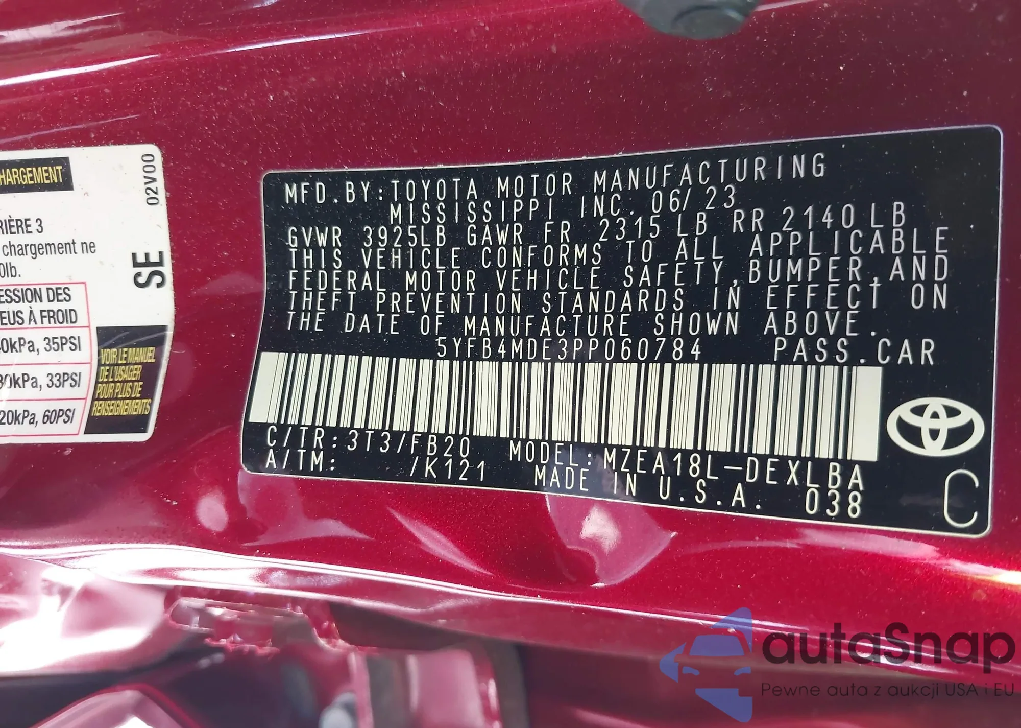 LOT: 43087404 VIN: 5YFB4MDE3PP060784