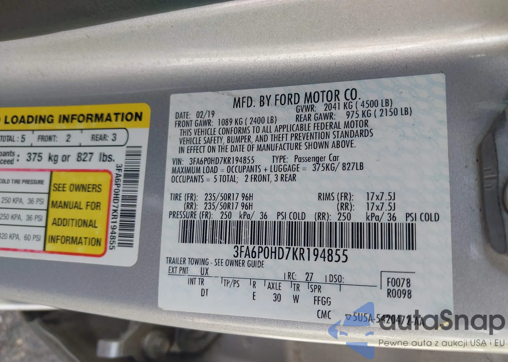 • VIN 3FA6P0HD7KR194855