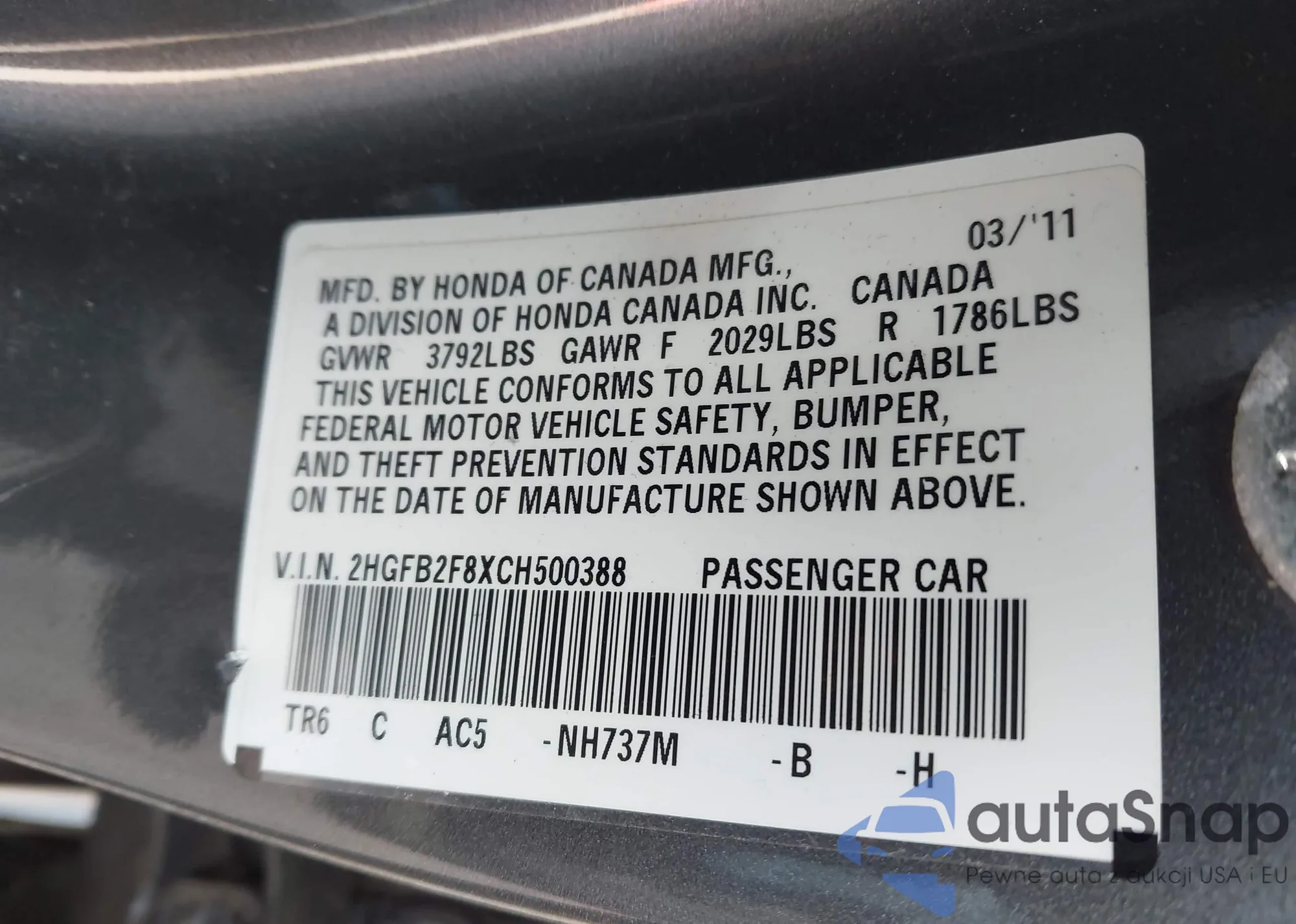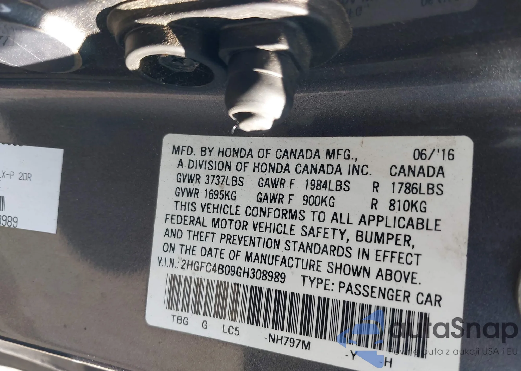 • VIN 2HGFC4B09GH308989
