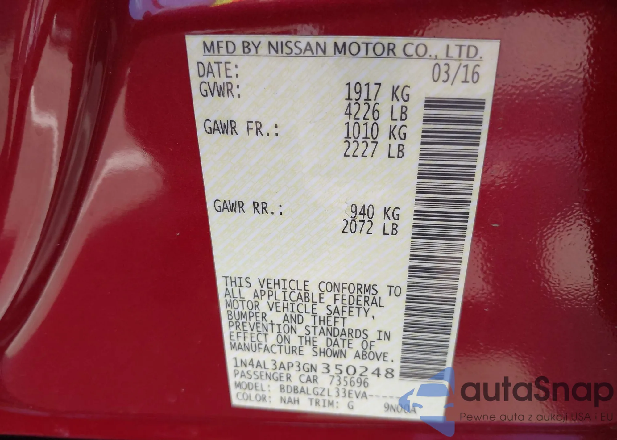 LOT: 41341526 VIN: 1N4AL2AP3AN460976