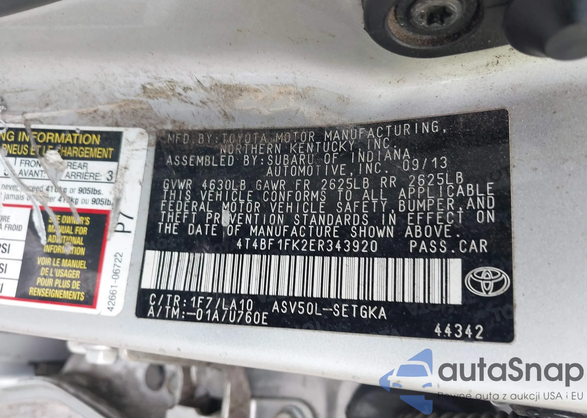 • VIN 4T4BF1FK2ER343920