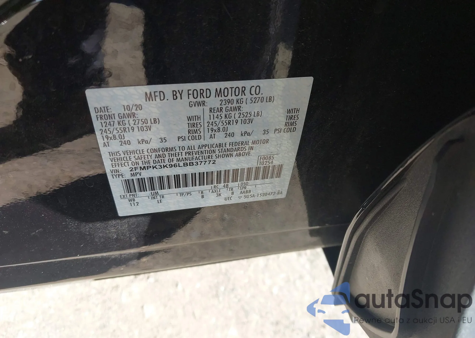 • VIN 2FMPK3K96LBB37772