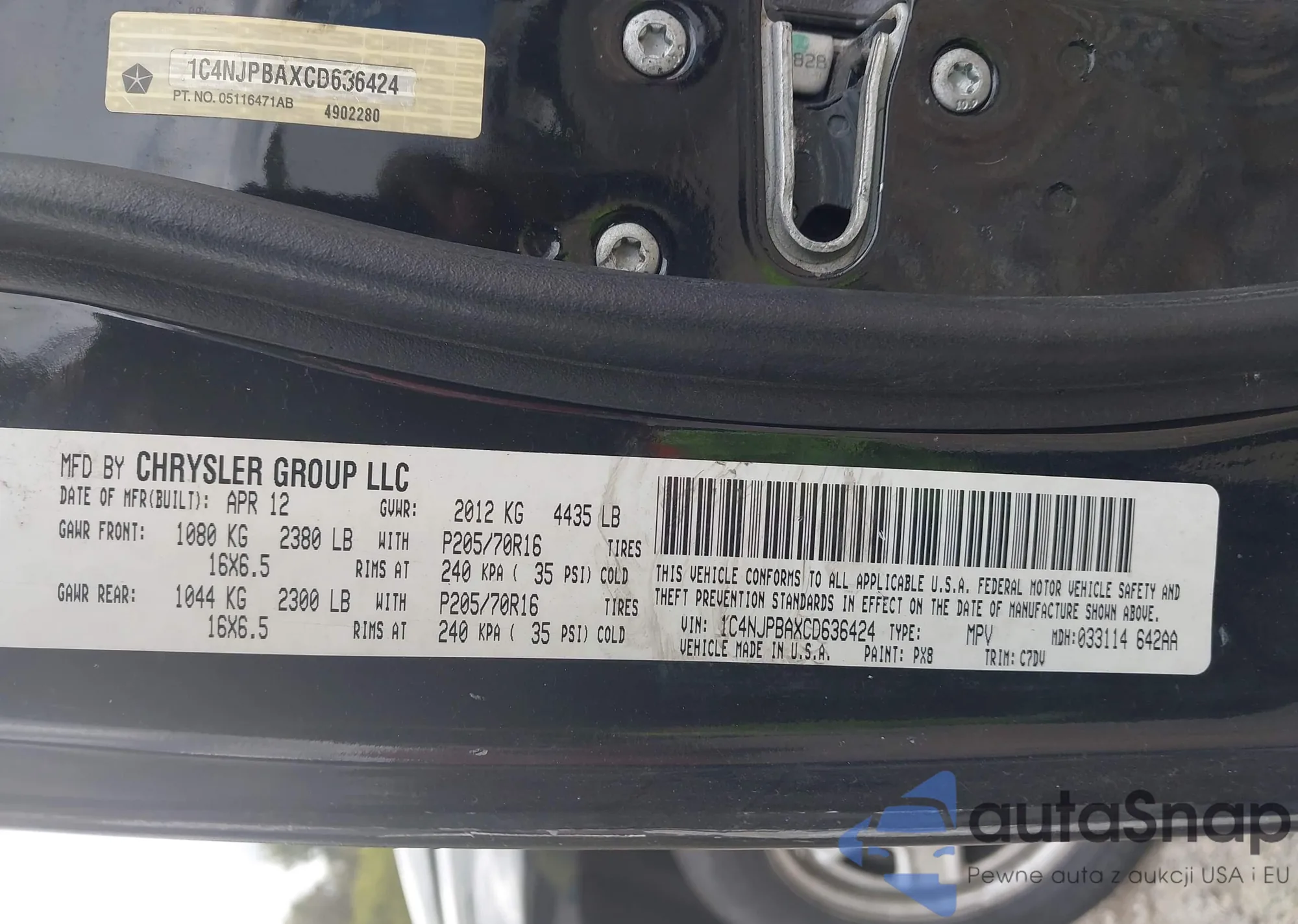 LOT: 43324202 VIN: 1C4NJPBAXCD636424