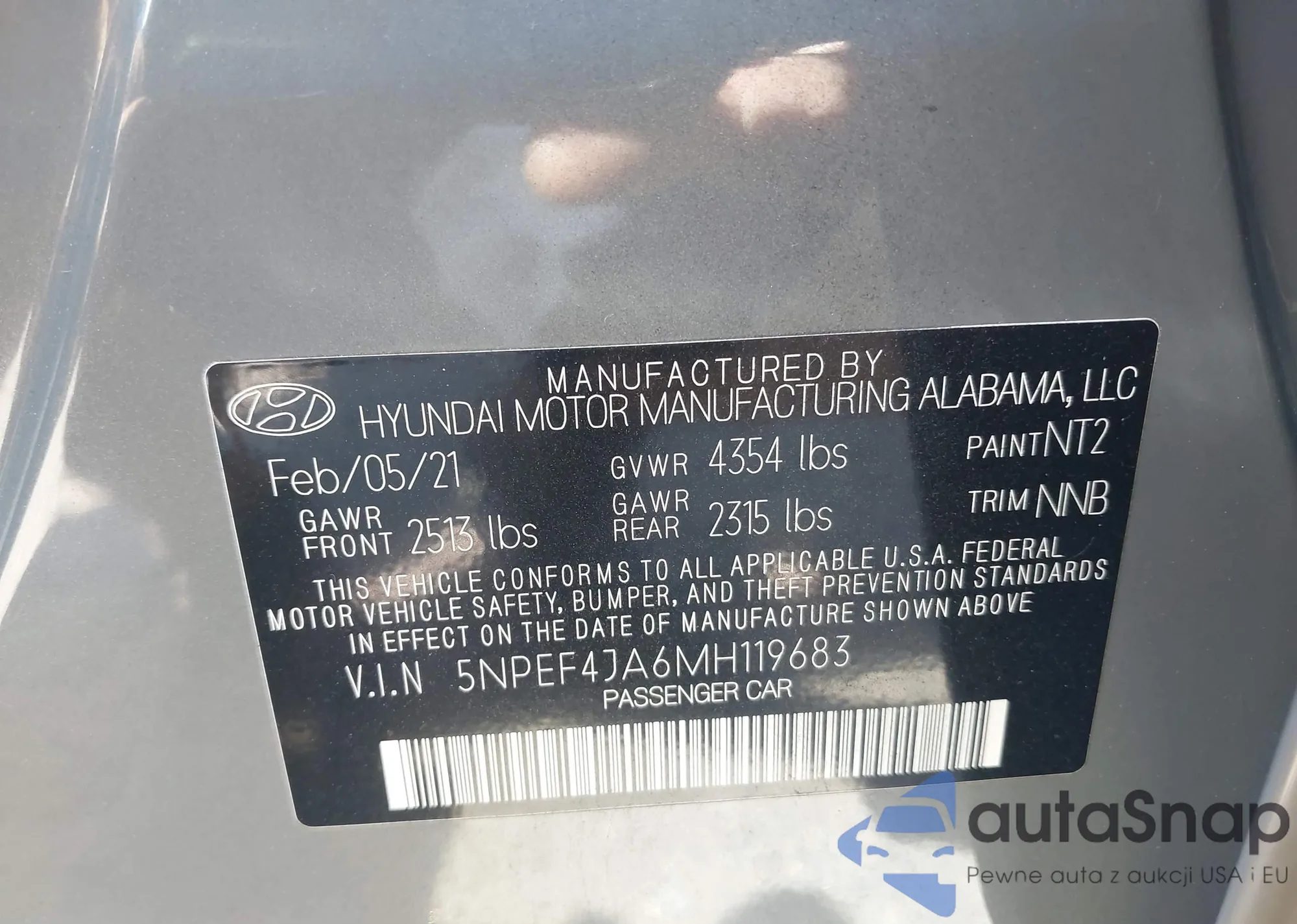 LOT: 43204702 VIN: 5NPEF4JA6MH119683